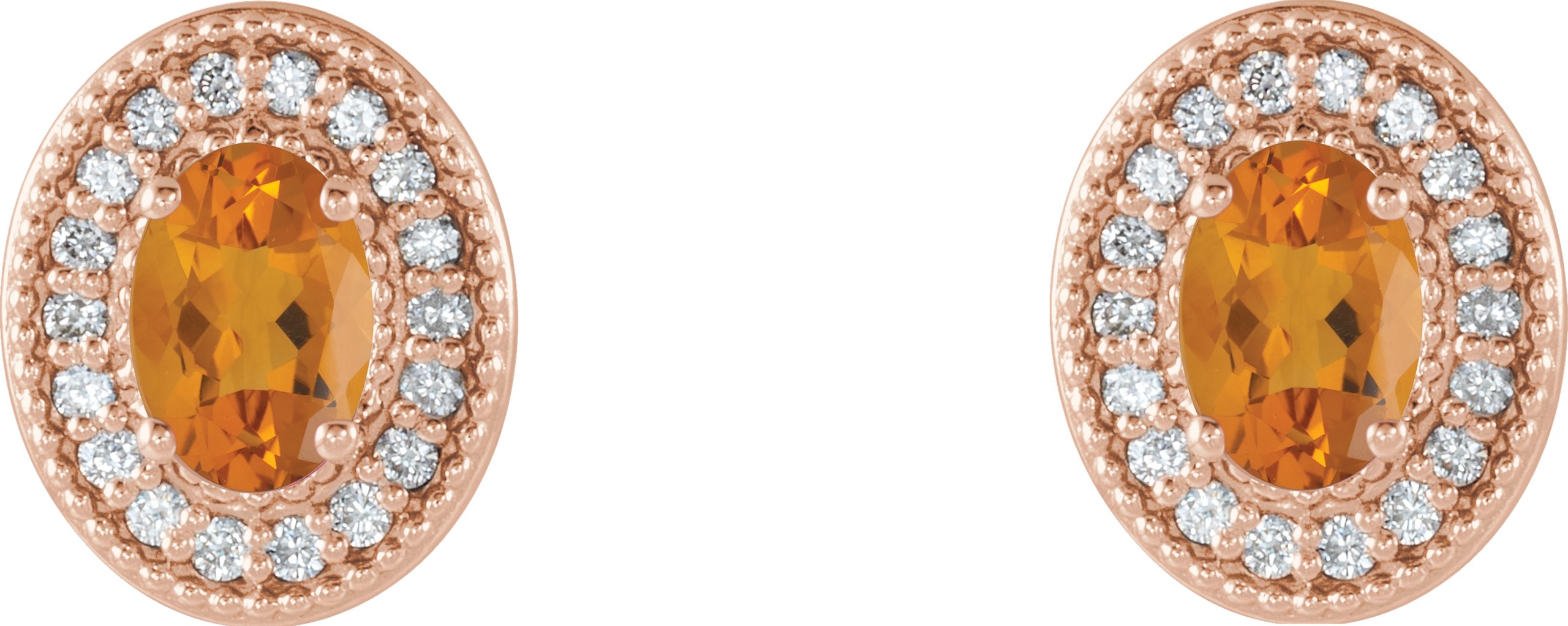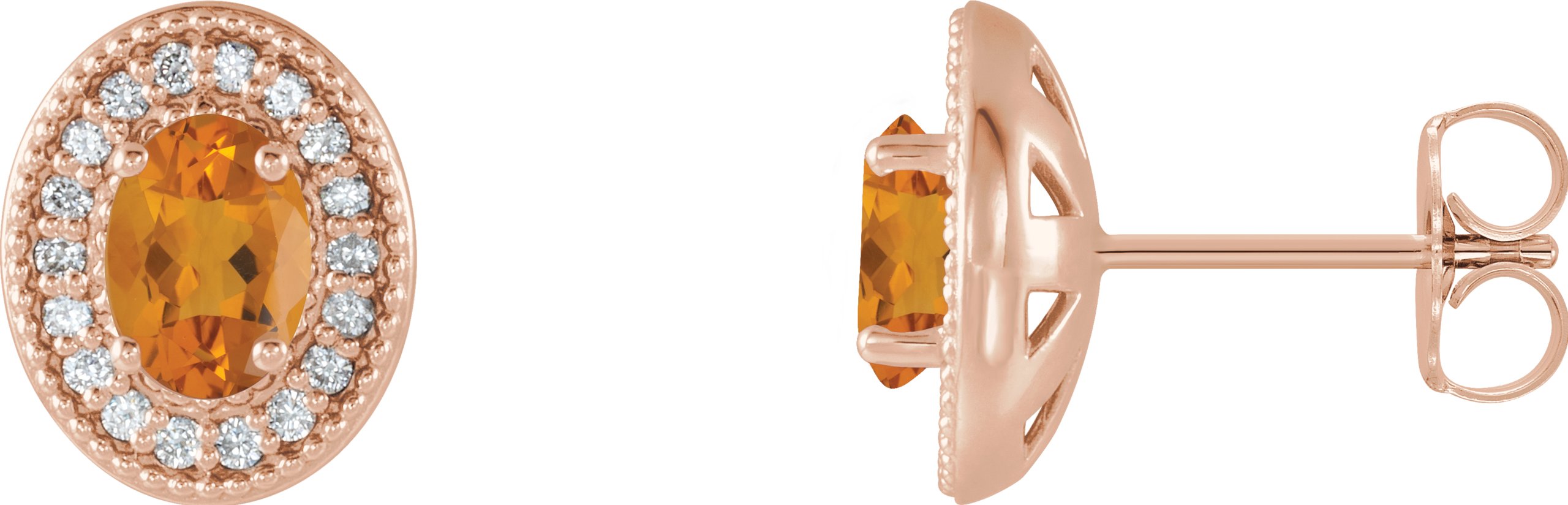 14K Rose Citrine & 1/5 CTW Diamond Halo Style Earrings