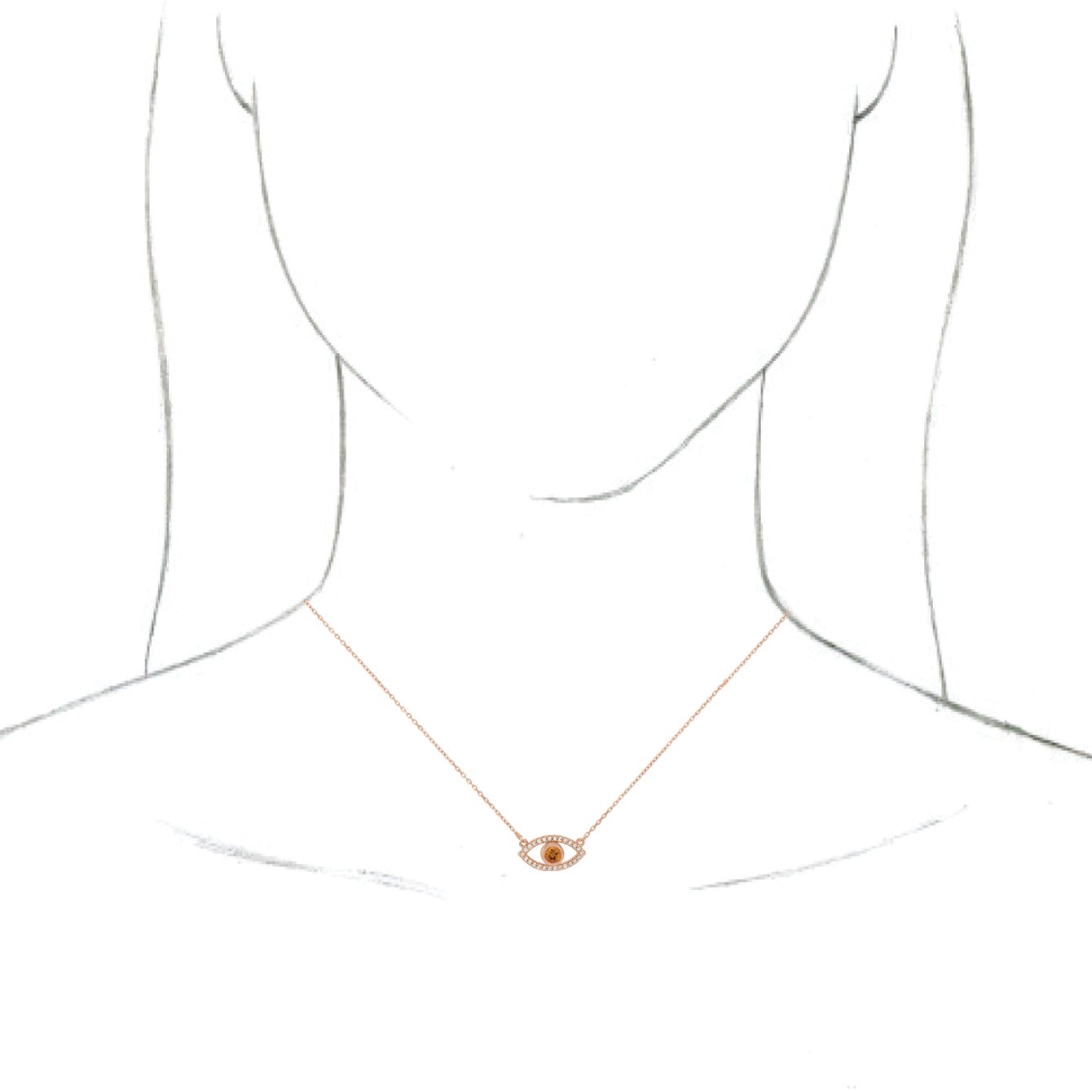 14K Rose Citrine & White Sapphire Evil Eye 16" Necklace Ref. 14866515