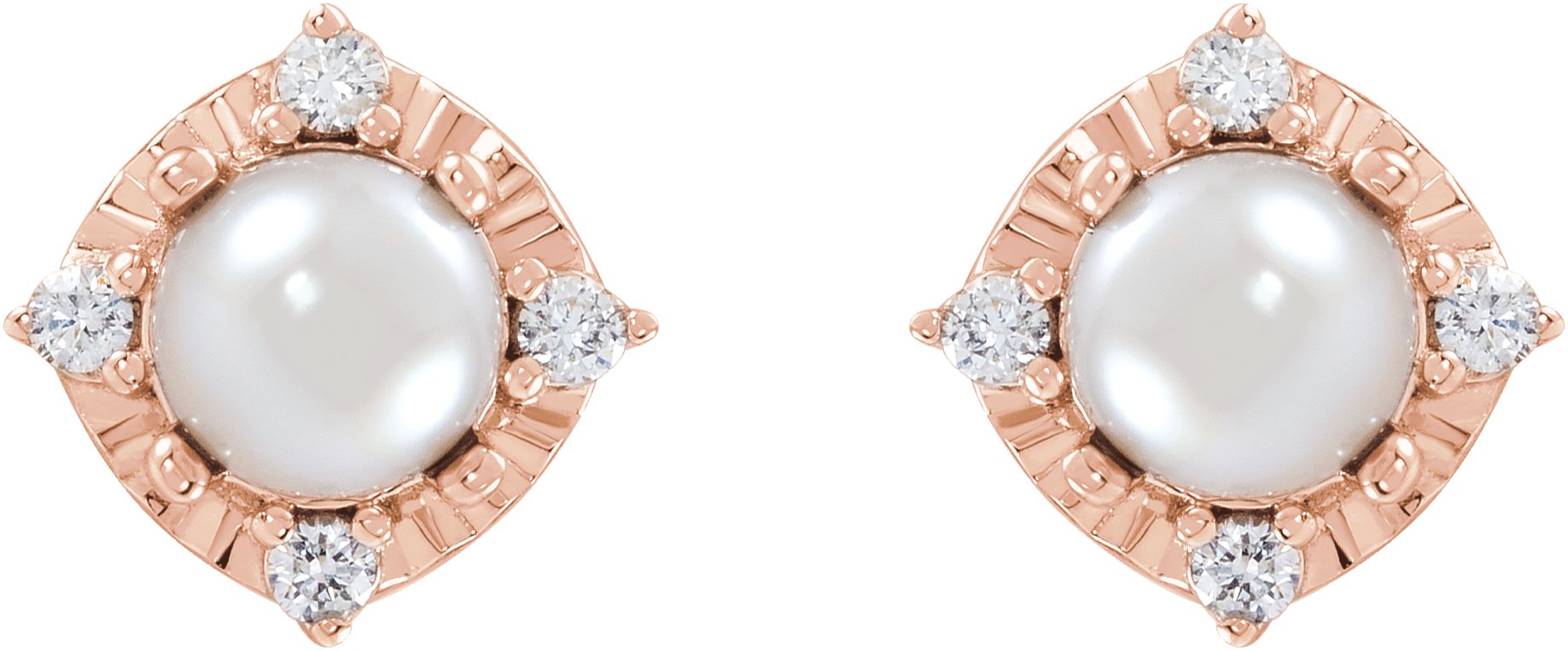 14K Rose Cultured Freshwater Pearl and .08 CTW Natural Diamond Halo Style Earrings Ref 17914946