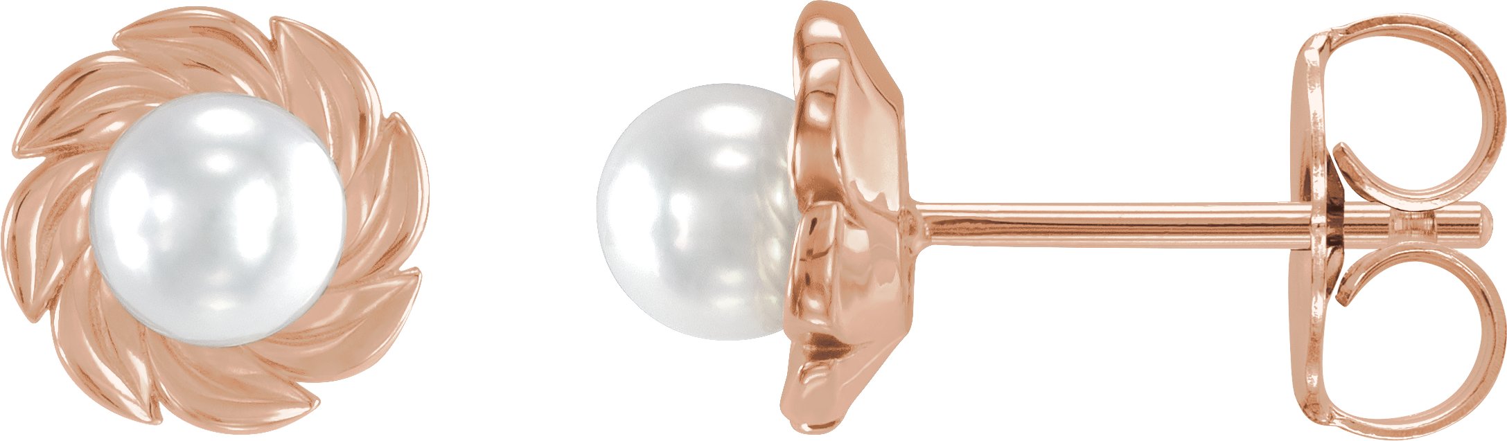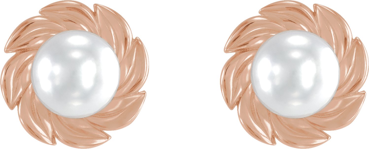 14K Rose Cultured White Akoya Pearl Leaf Earrings Ref 19617878