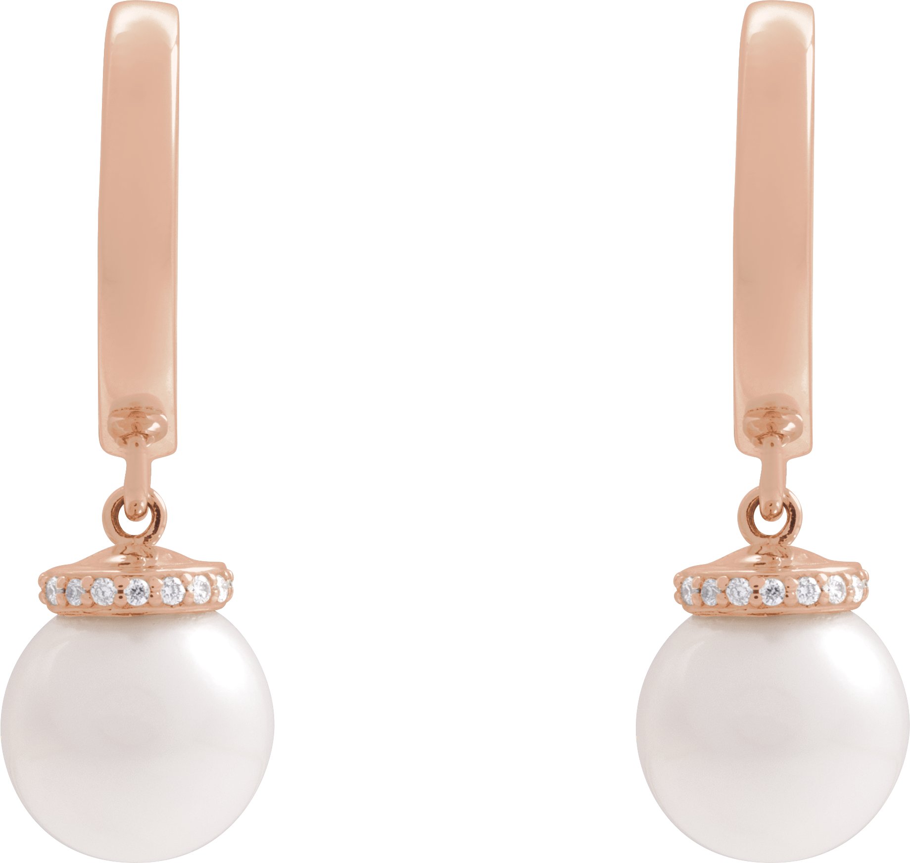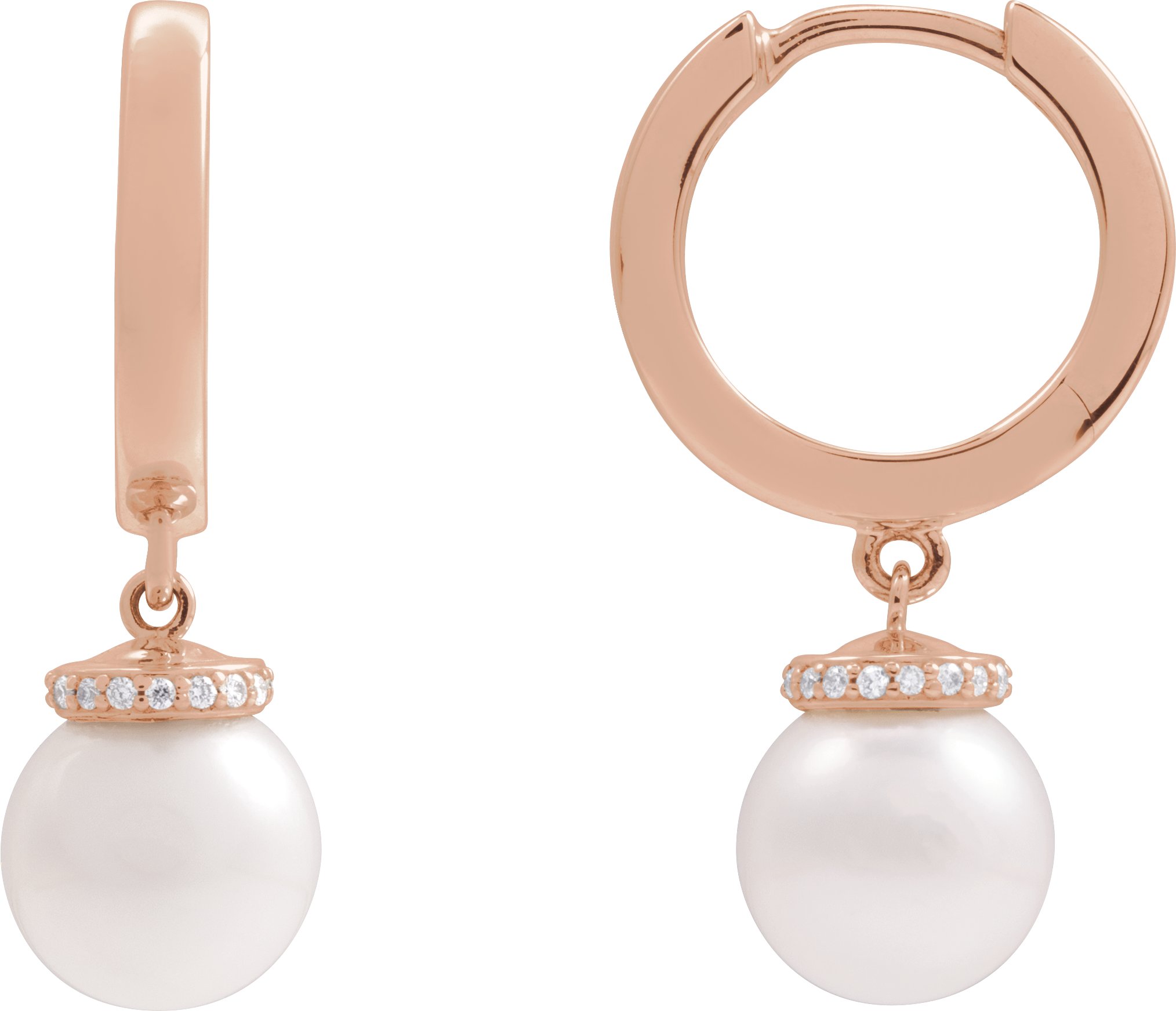 14K Rose Cultured White Akoya Pearl & .07 CTW Natural Diamond Hinged 14.2 mm Hoop Earrings
