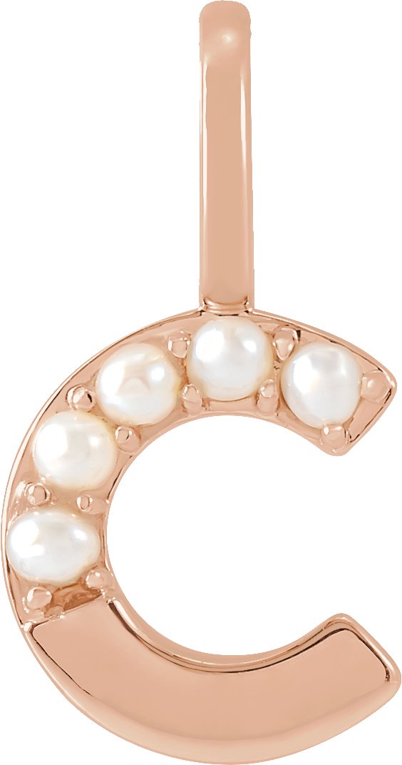 14K Rose Cultured White Pearl Initial C Charm or Pendant Ref 18479250