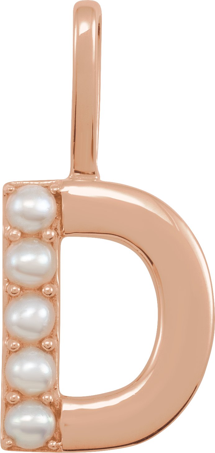 14K Rose Cultured White Pearl Initial D Charm or Pendant Ref 18479253