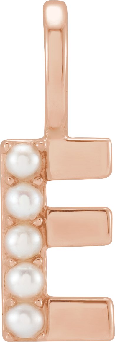 14K Rose Cultured White Pearl Initial E Charm or Pendant Ref 18479256