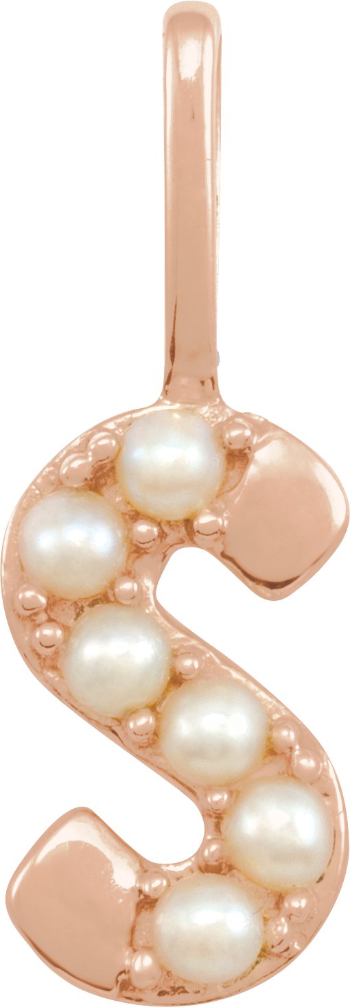 14K Rose Cultured White Pearl Initial S Charm or Pendant Ref 18479298