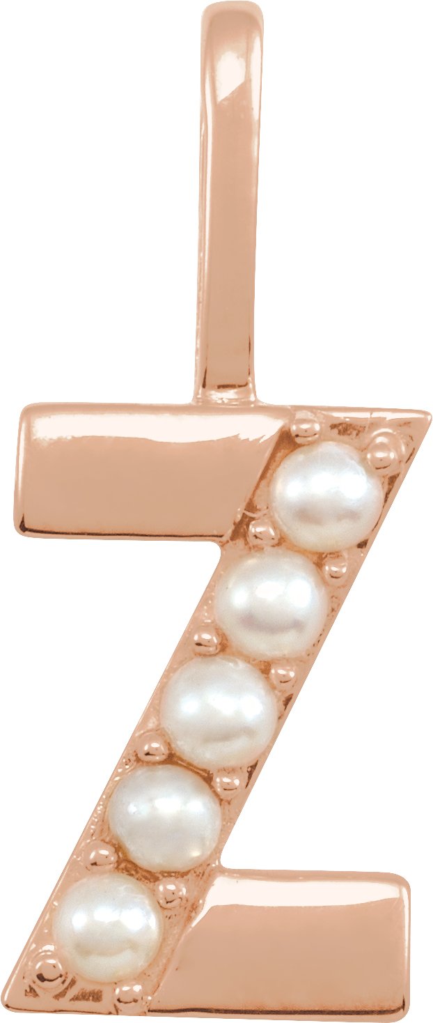 14K Rose Cultured White Pearl Initial Z Charm or Pendant Ref 18479319