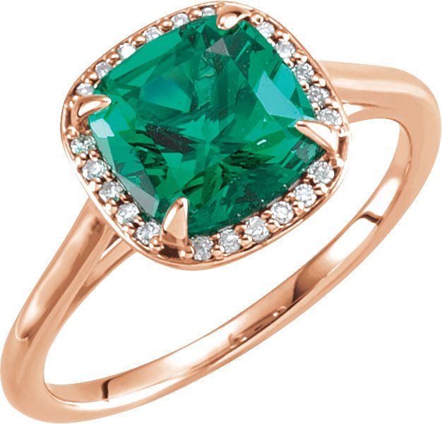 14K Rose Emerald & .055 CTW Diamond Halo Style Ring
