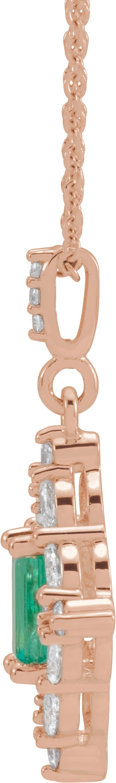 14K Rose Emerald & 3/8 CTW Diamond 16 18 inch Necklace