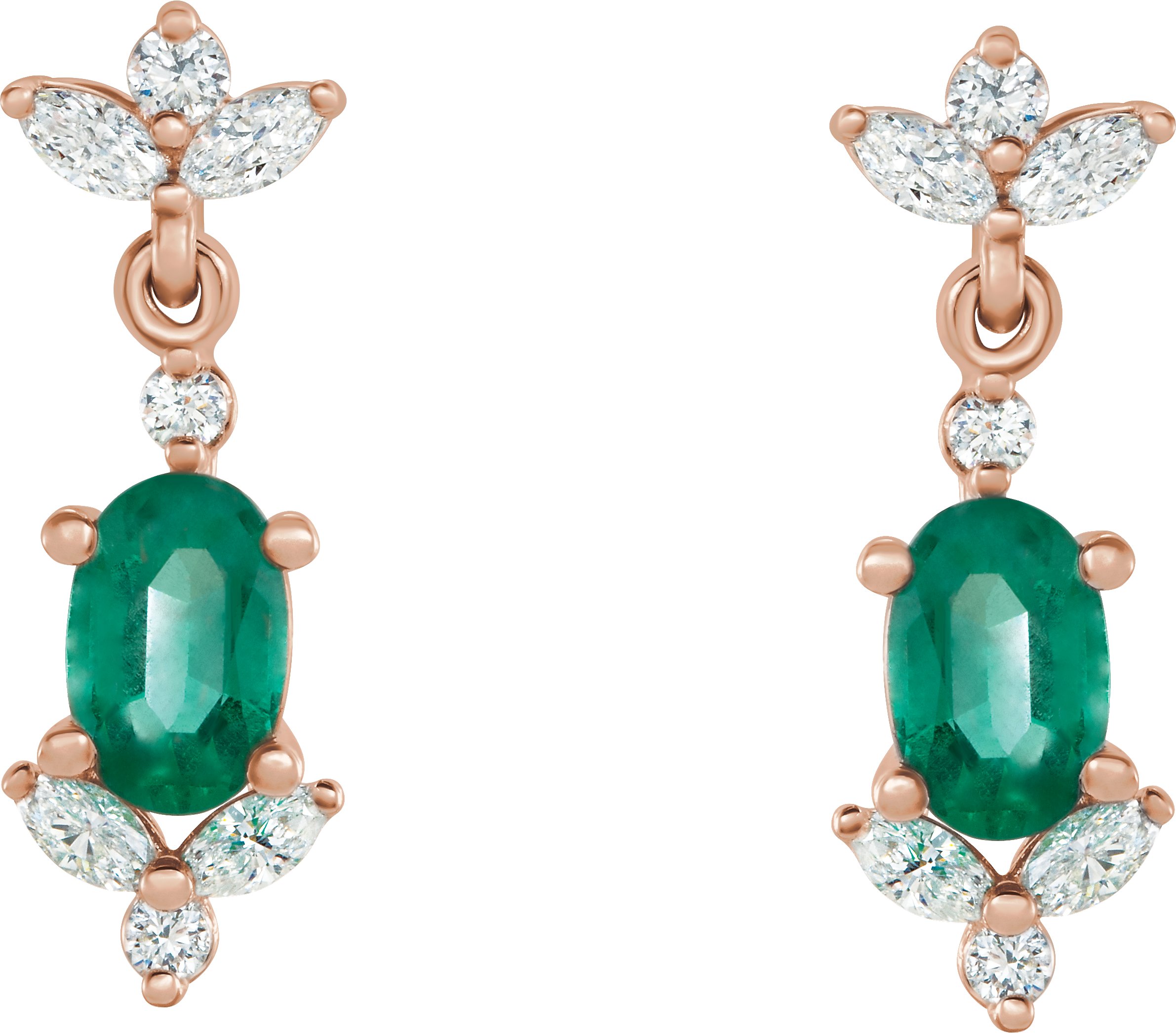 14K Rose Emerald & 3/8 CTW Diamond Earrings