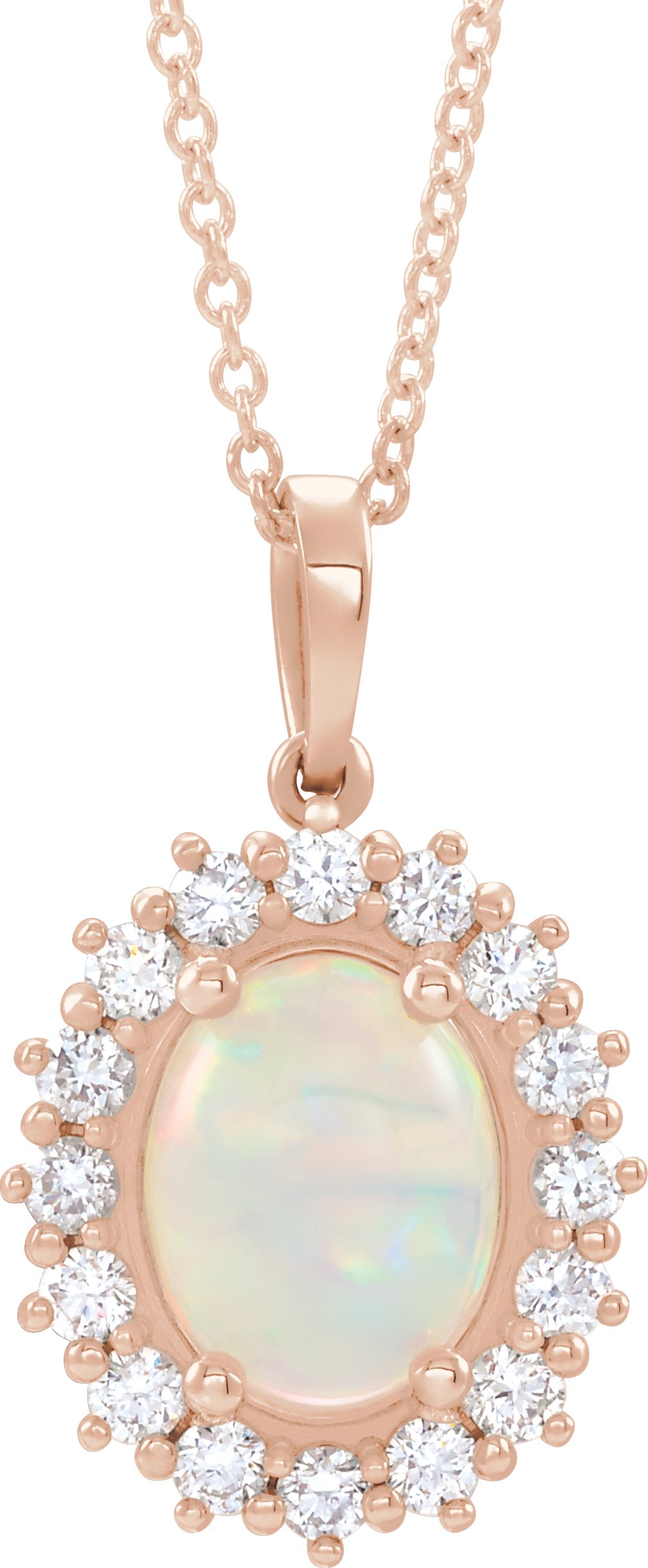 14K Rose Ethiopian Opal & 1/3 CTW Diamond Halo Style 16 18 inch Necklace