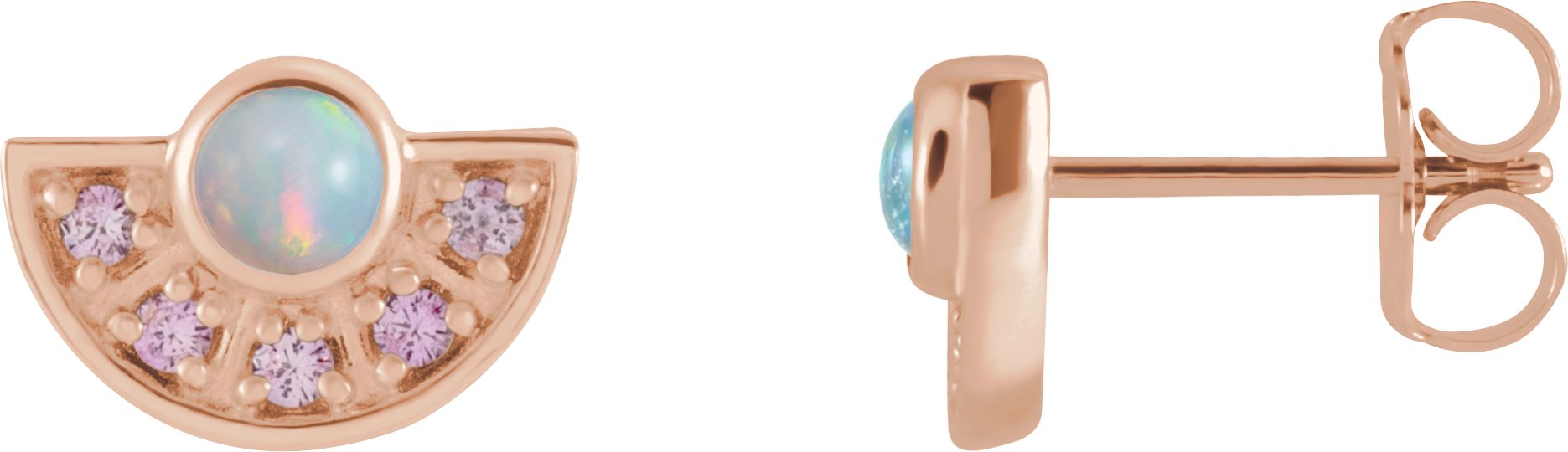 14K Rose Ethiopian Opal & Pink Sapphire Fan Earrings