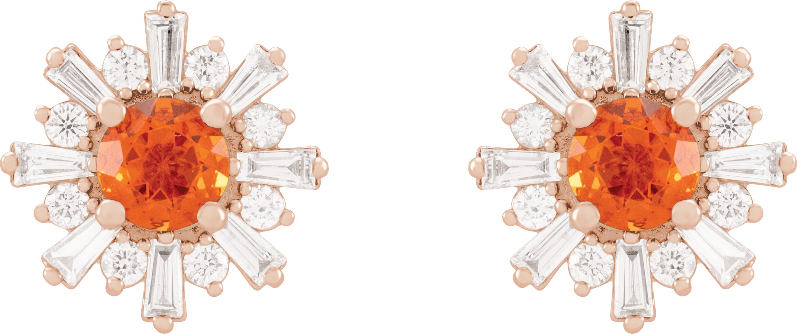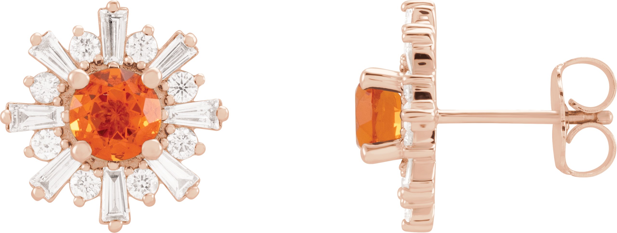 14K Rose Fire Opal & 3/4 CTW Diamond Earrings