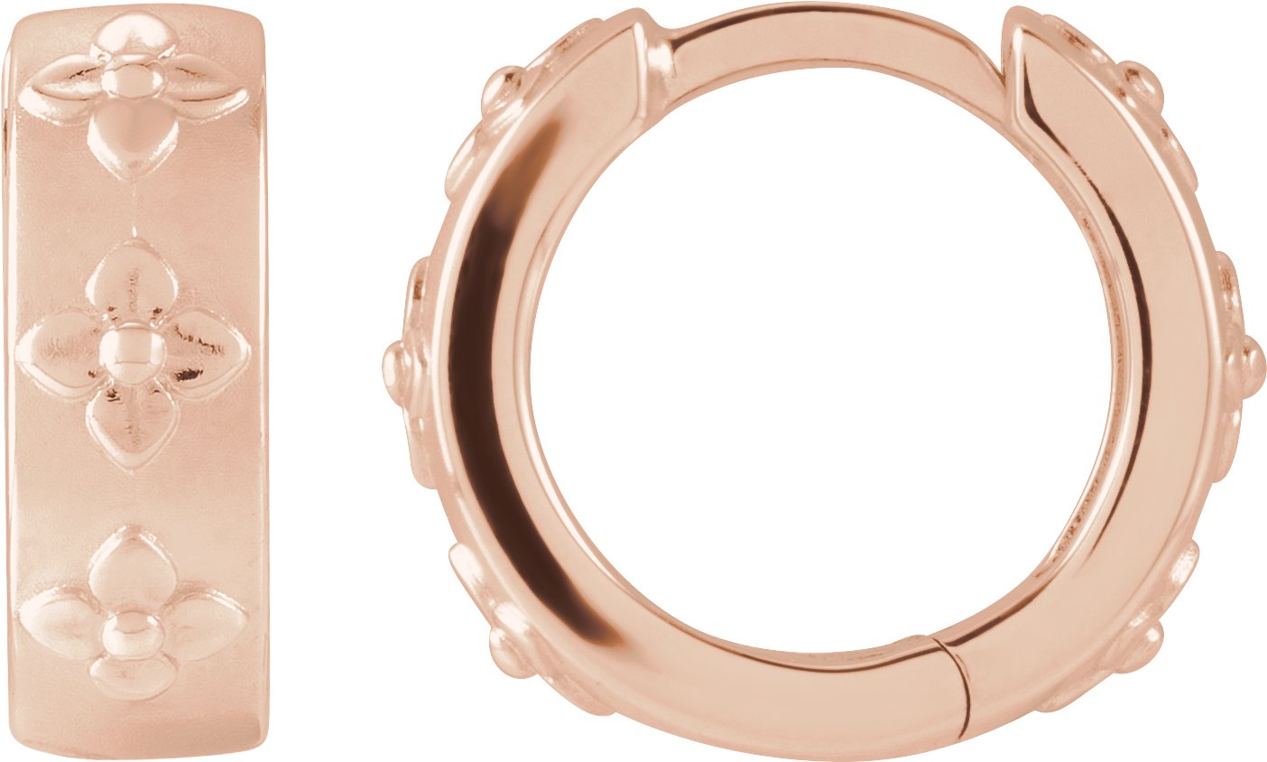 14K Rose Floral Hinged 13.2 mm Hoop Earrings