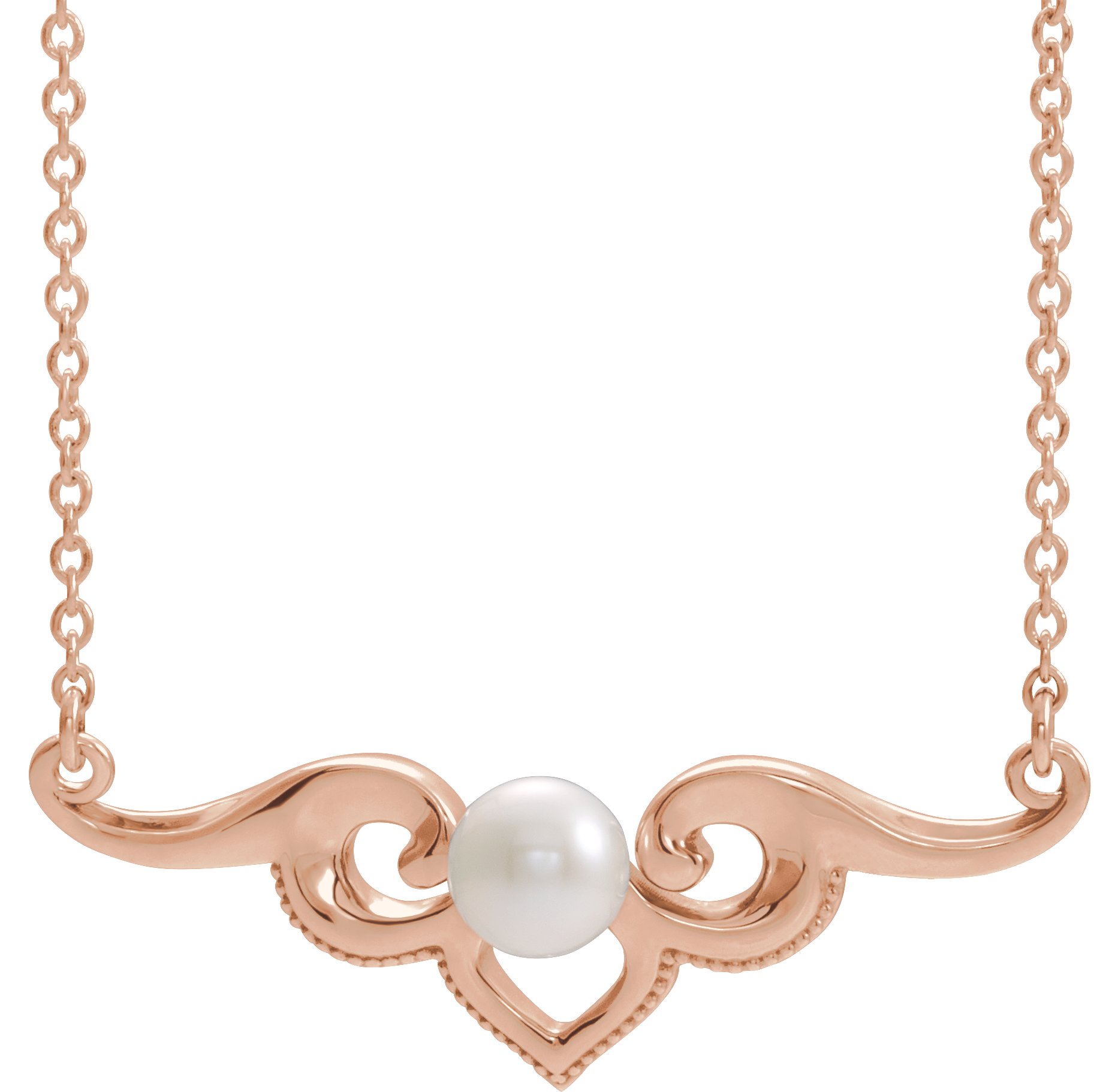 14K Rose Freshwater Cultured Pearl Bar 16 inch Necklace