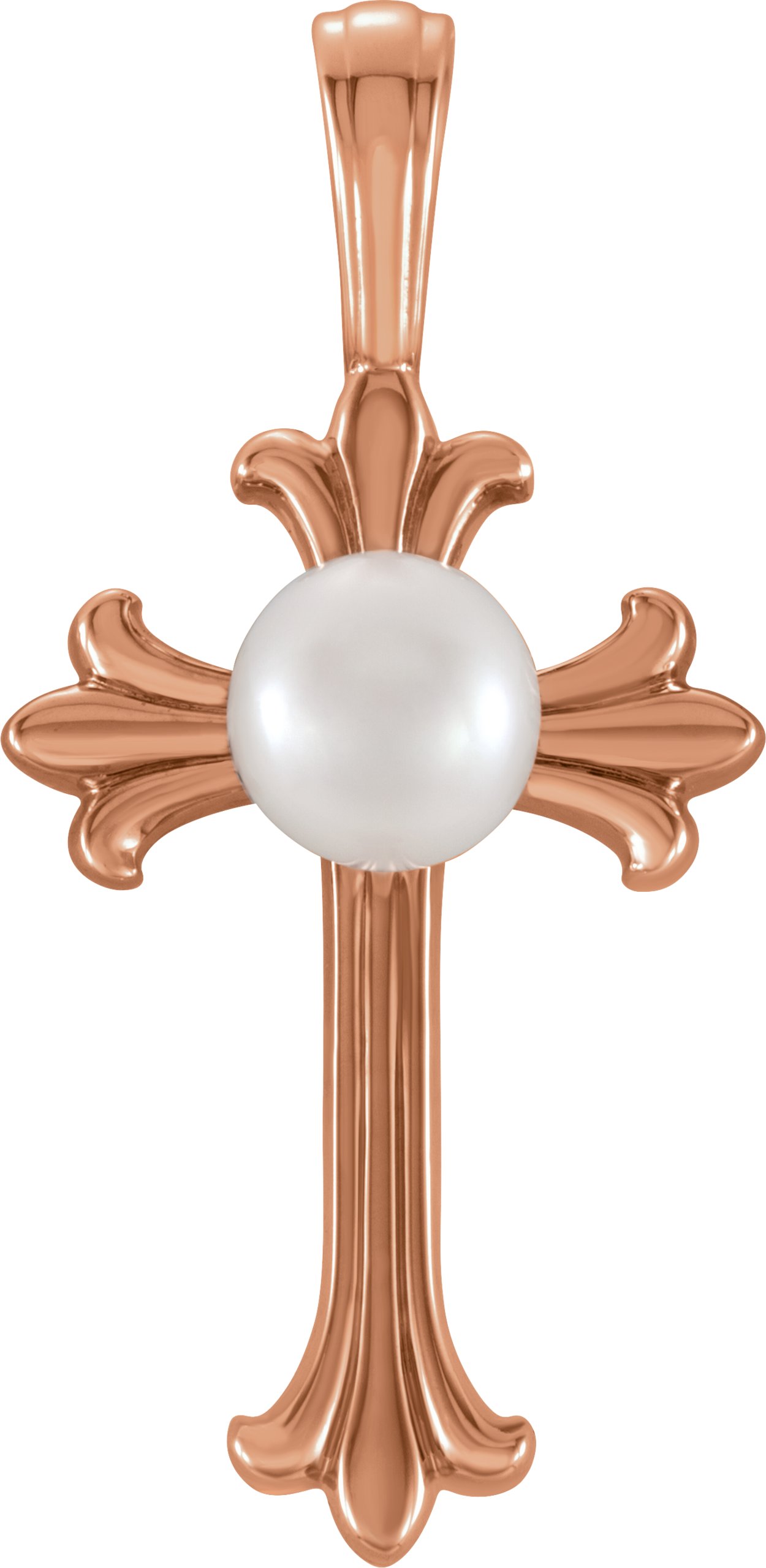 14K Rose Freshwater Cultured Pearl Cross Pendant Ref. 12577081