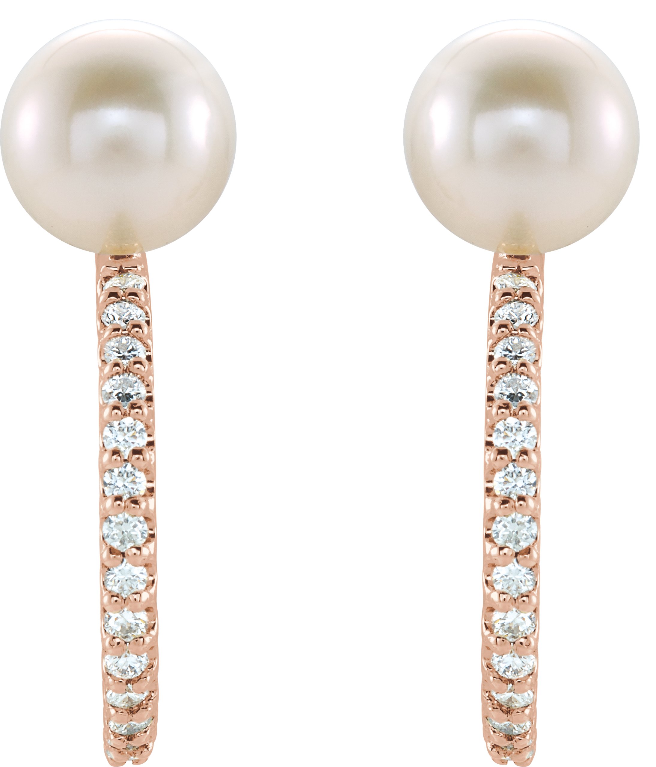 14K Rose Freshwater Cultured Pearl & 1/6 CTW Diamond Hoop Earrings