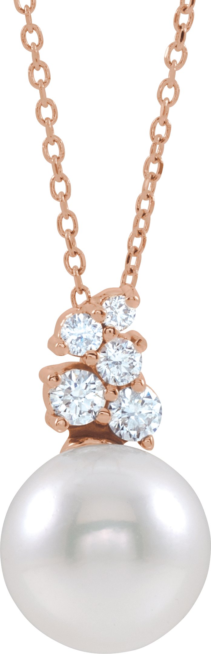 14K Rose Freshwater Cultured Pearl & 1/4 CTW Diamond 16 18 inch Necklace