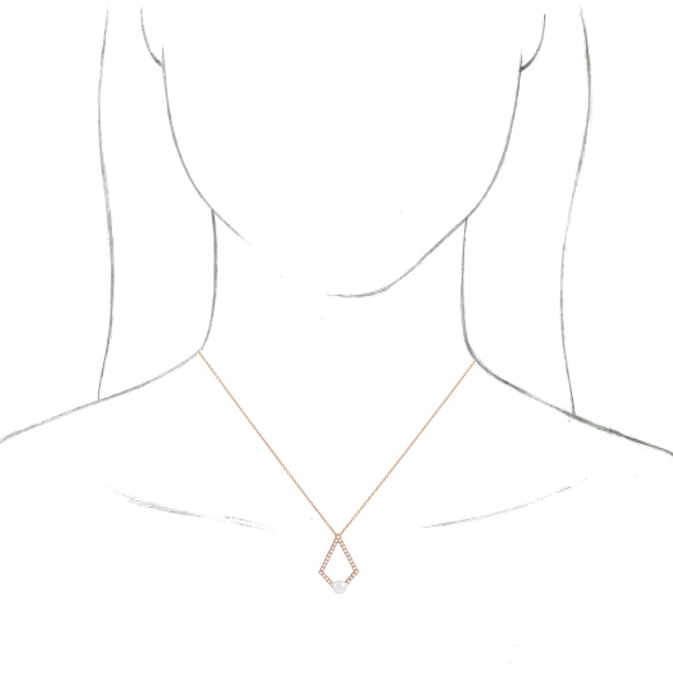 14K Rose Freshwater Cultured Pearl & 1/4 CTW Diamond Geometric 16 18 inch Necklace