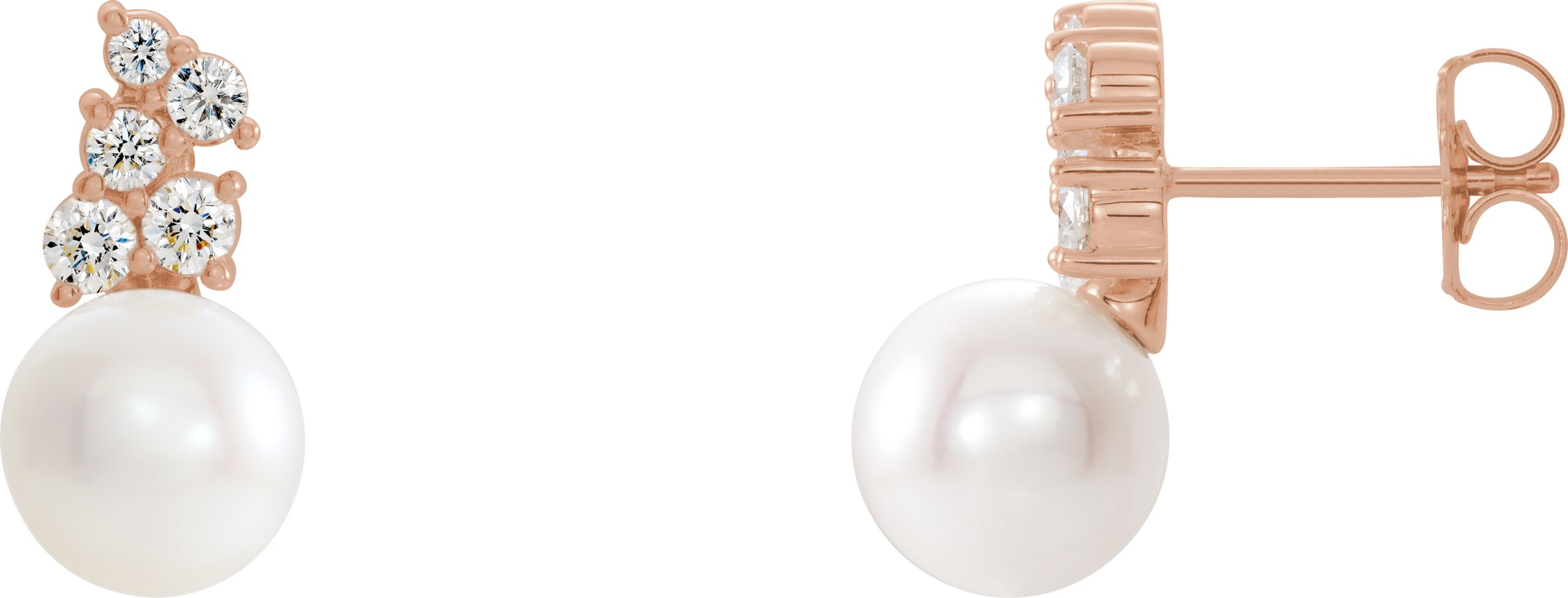 14K Rose Freshwater Cultured Pearl & 3/8 CTW Diamond Earrings