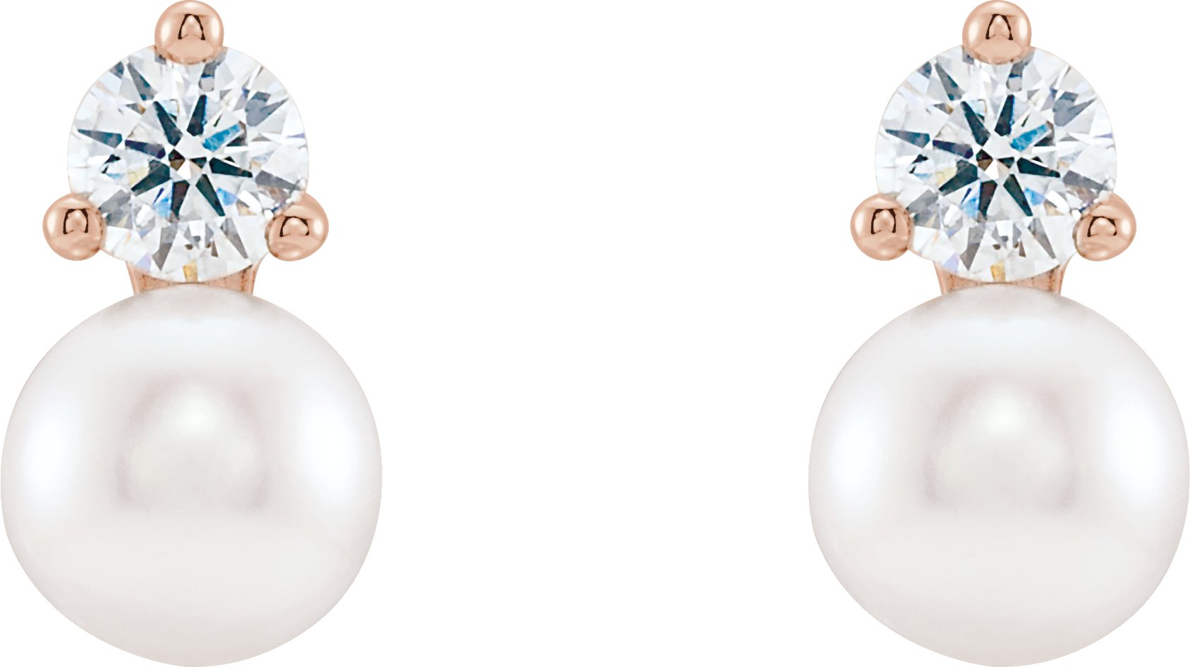 14K Rose Freshwater Cultured Pearl & 1/2 CTW Diamond Earrings