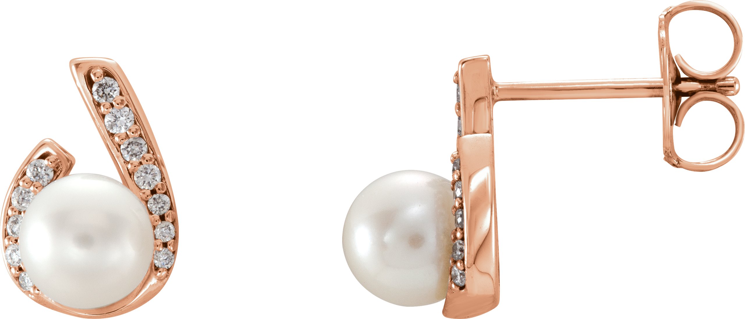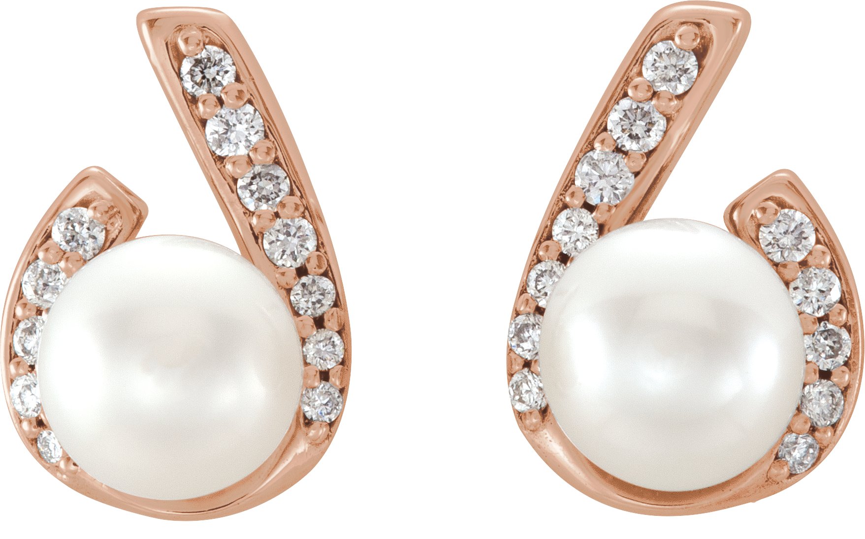 14K Rose Freshwater Pearl & 1/10 CTW Diamond Earrings