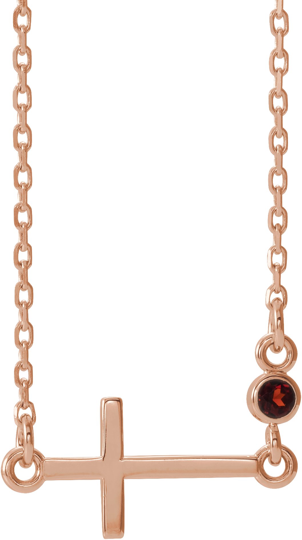 14K Rose Garnet Sideways Accented Cross 16 18" Necklace Ref. 13269716