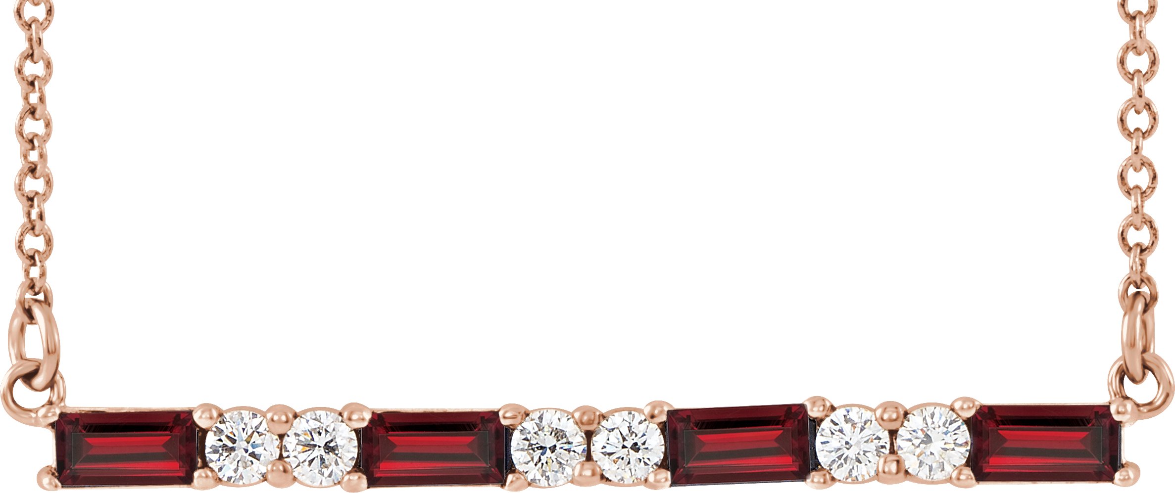 14K Rose Garnet & 1/5 CTW Diamond Bar 16 18 inch Necklace
