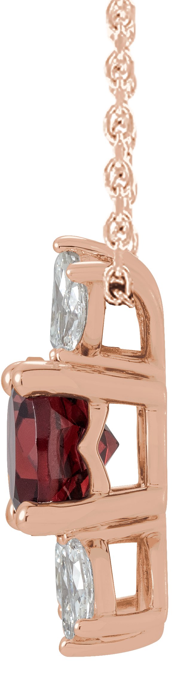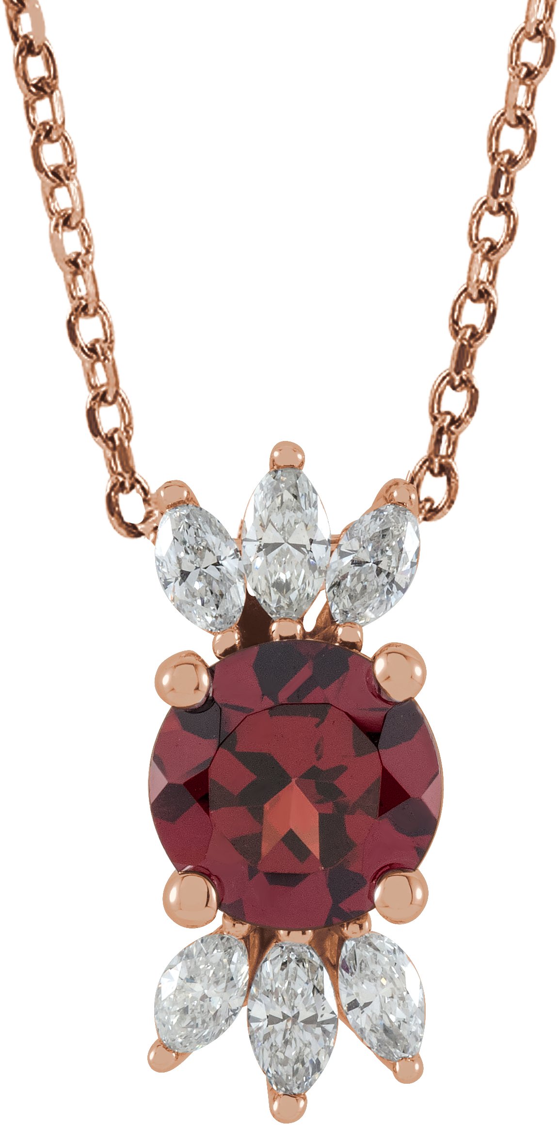 14K Rose Garnet & 1/4 CTW Diamond 16 18 inch Necklace