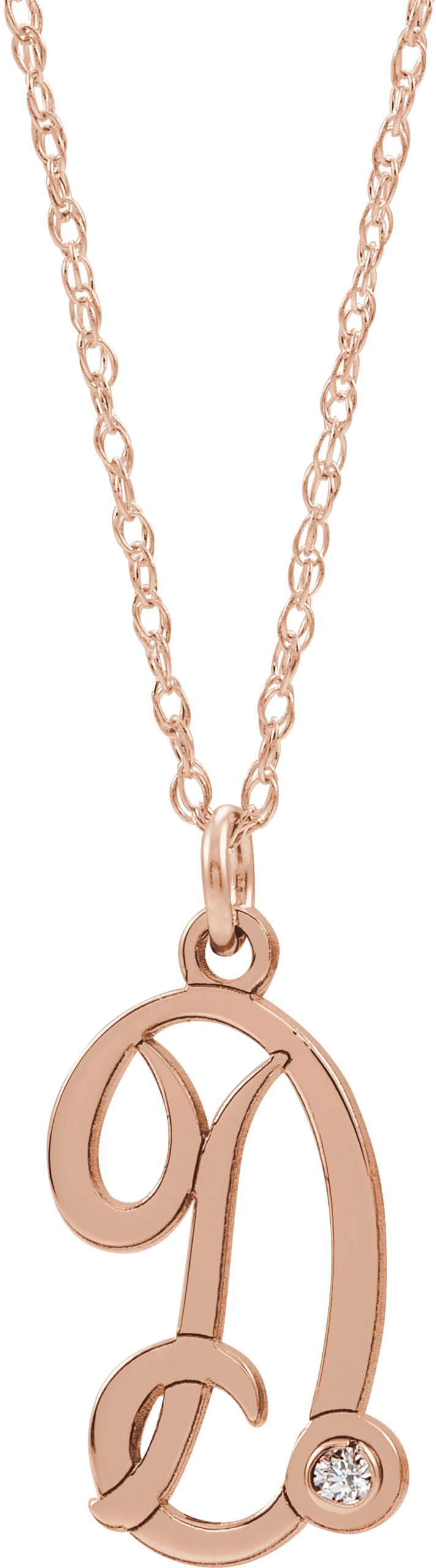 14K Rose Gold Plated Sterling Silver .02 CT Diamond Script Initial D 16 18" Necklace Ref. 16047647