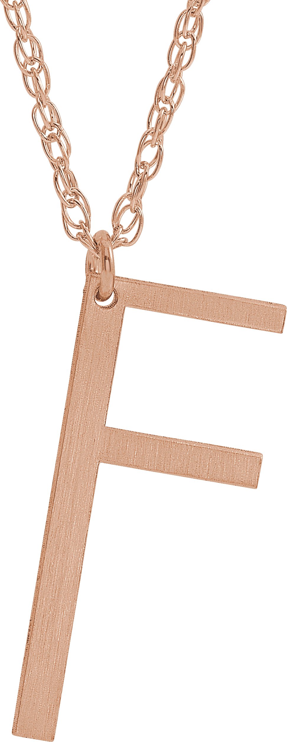 14K Rose Gold Plated Sterling Silver Block Initial F 16 18" Necklace with Brush Finish Ref. 16047337