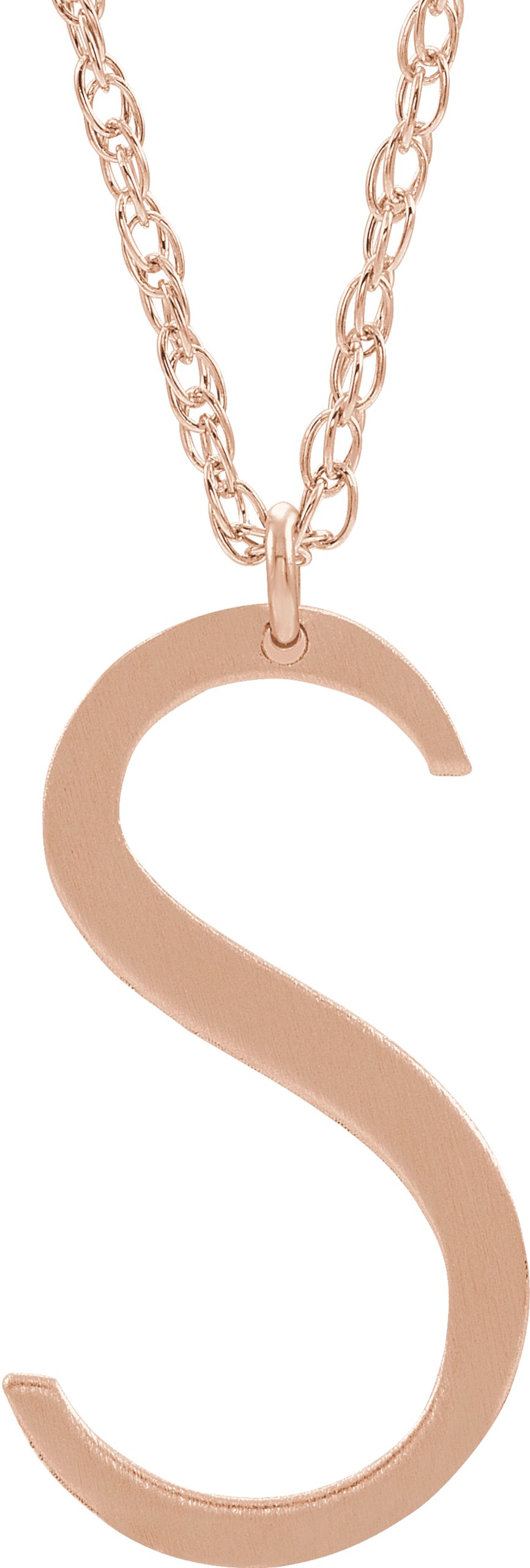 14K Rose Gold Plated Sterling Silver Block Initial S 16 18" Necklace with Brush Finish Ref. 16047350