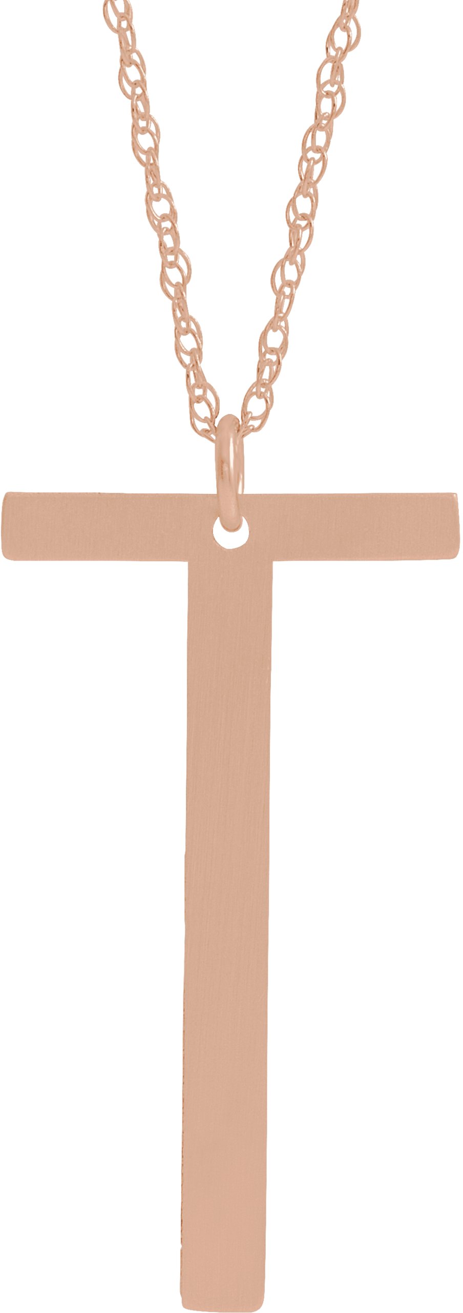 14K Rose Gold Plated Sterling Silver Block Initial T 16 18" Necklace with Brush Finish Ref. 16047507