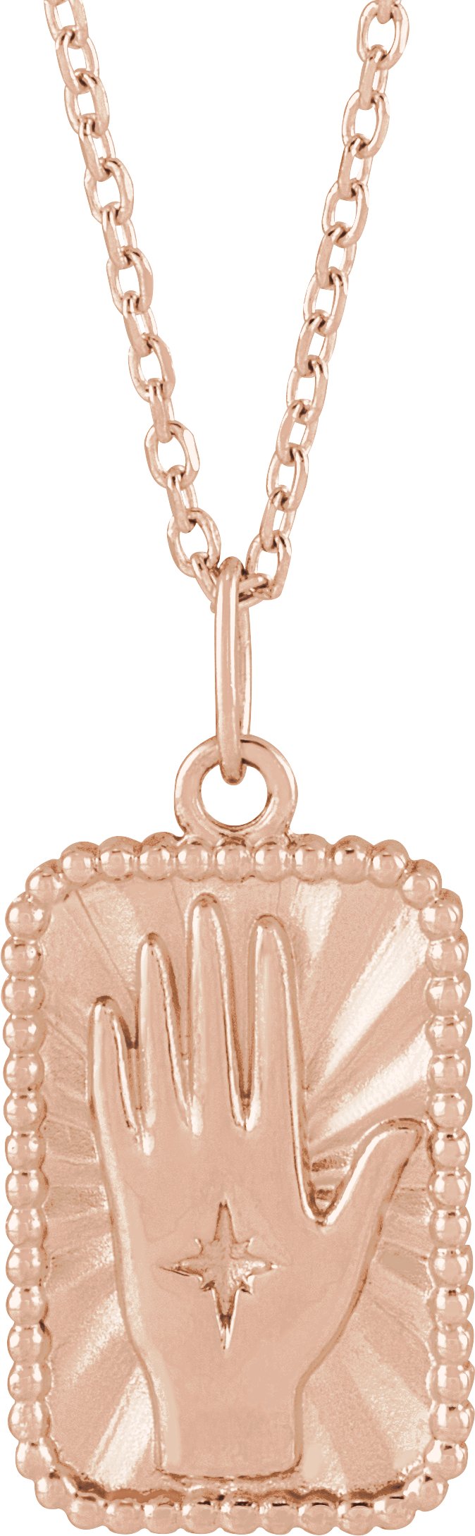 14K Rose Hamsa Hand Tarot 16 to 18 inch Necklace Ref 19625831