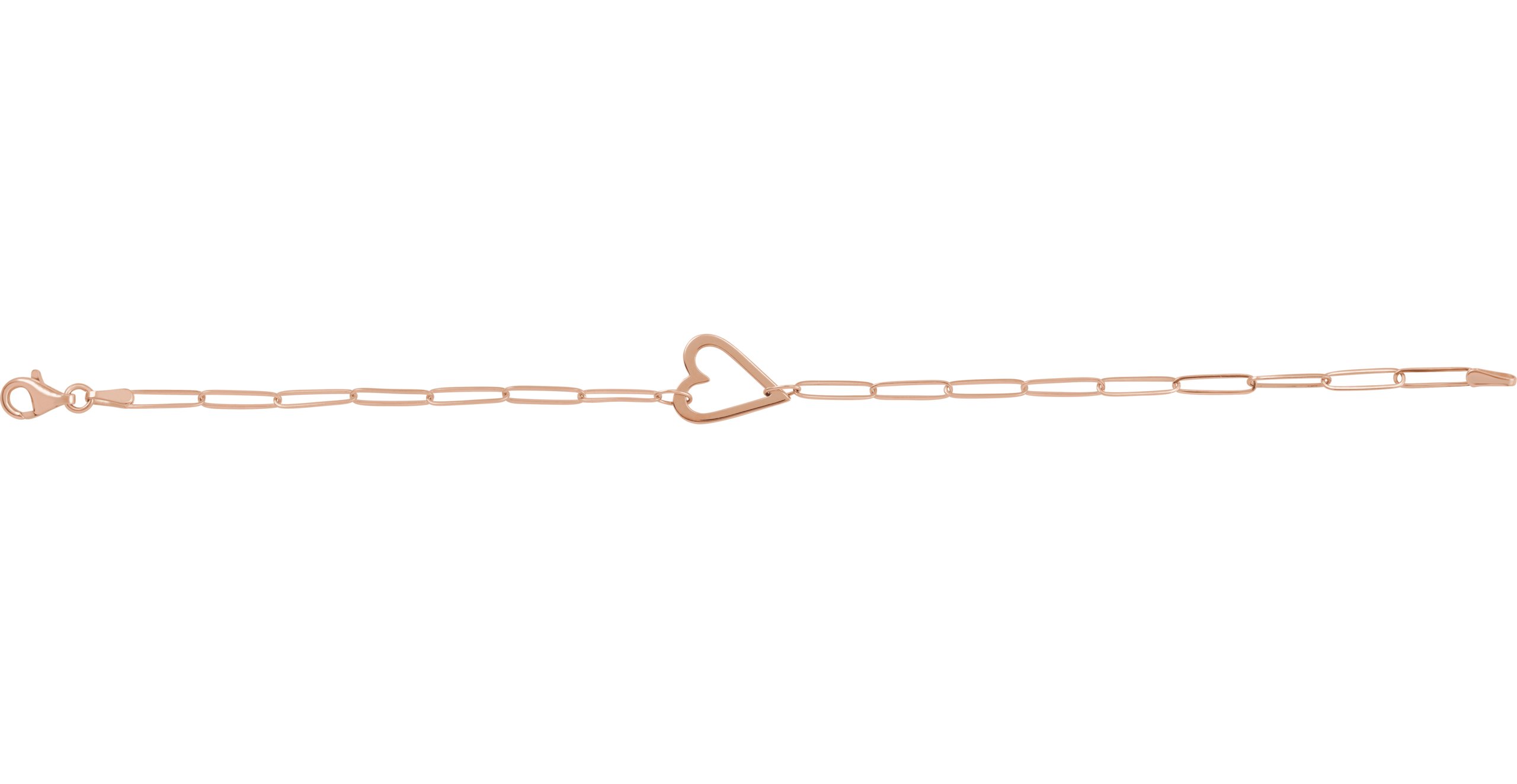 14K Rose Heart & Paperclip-Style Chain 7" Bracelet