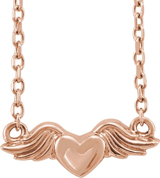 14K Rose Heart with Angel Wings 18" Necklace