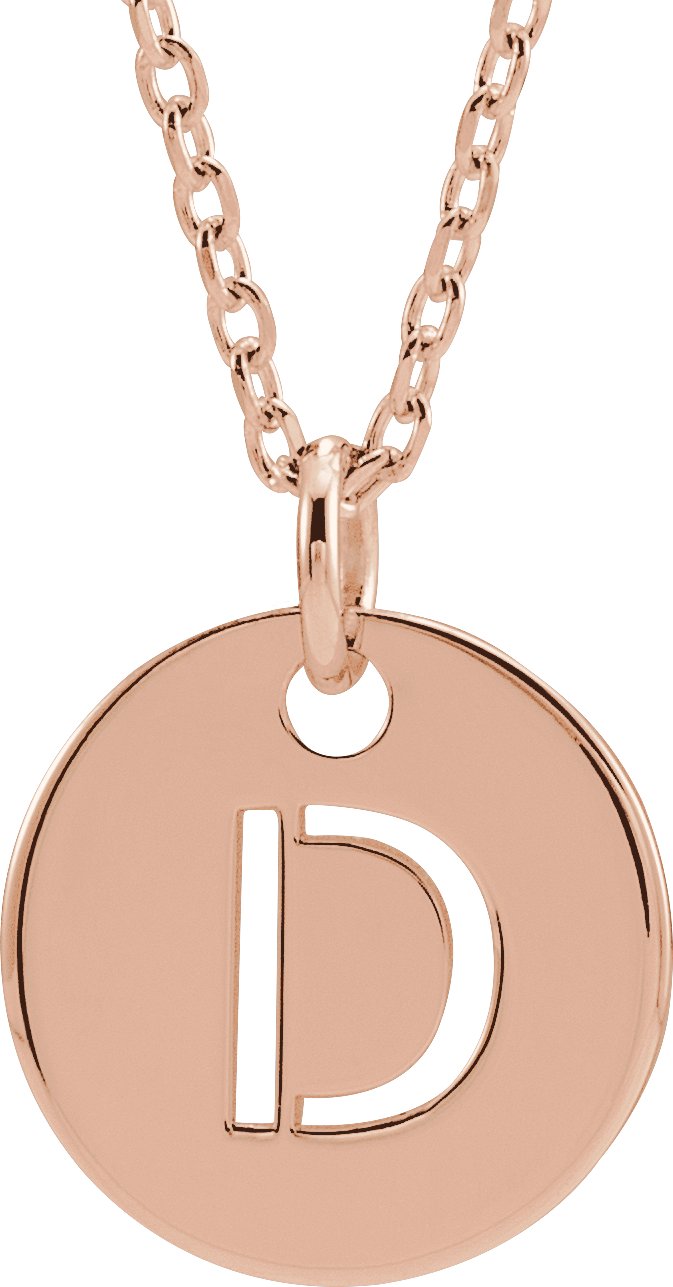 14K Rose Initial D 10 mm Disc 16 18" Necklace Ref. 16680369