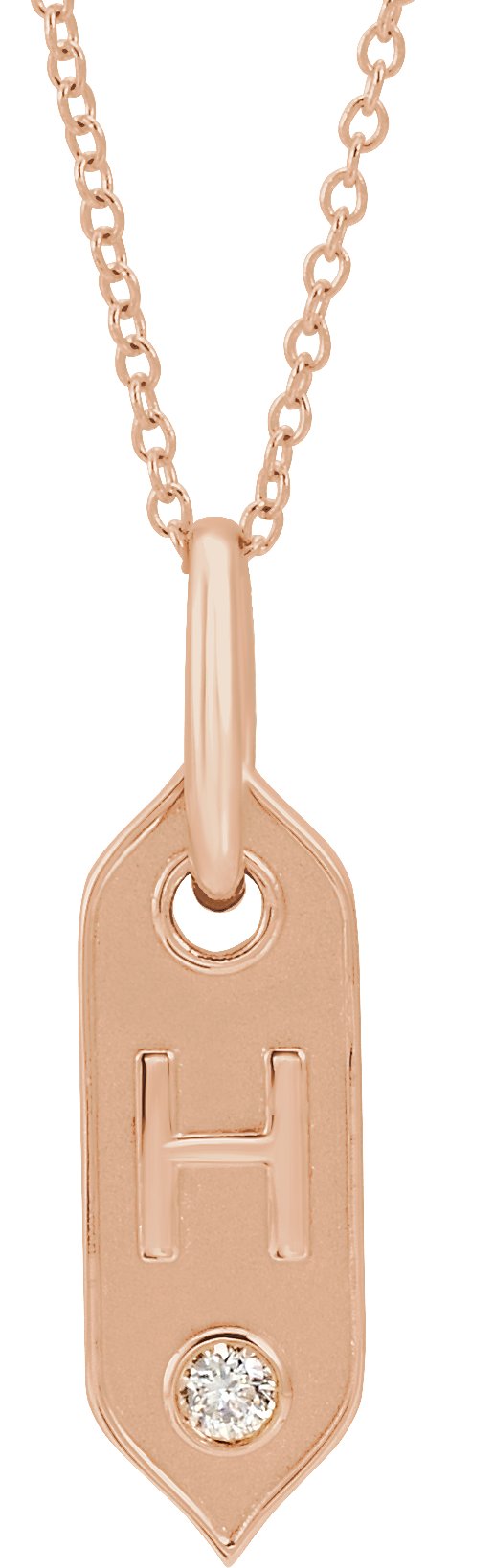 14K Rose Initial H .05 CT Diamond 16-18" Necklace