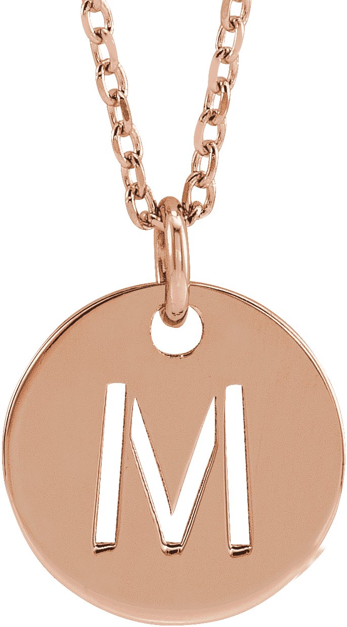 14K Rose Initial M 10 mm Disc 16 18" Necklace Ref. 16680405