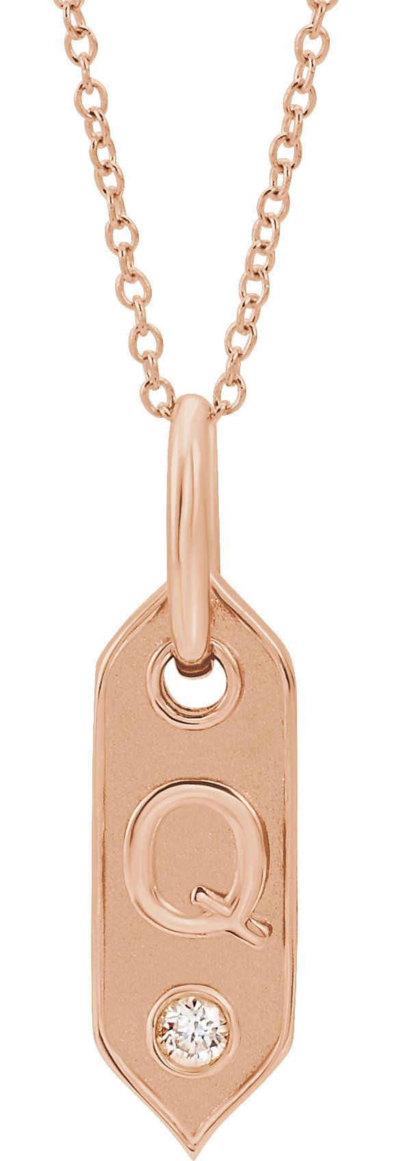 14K Rose Initial Q .05 CT Diamond 16-18" Necklace