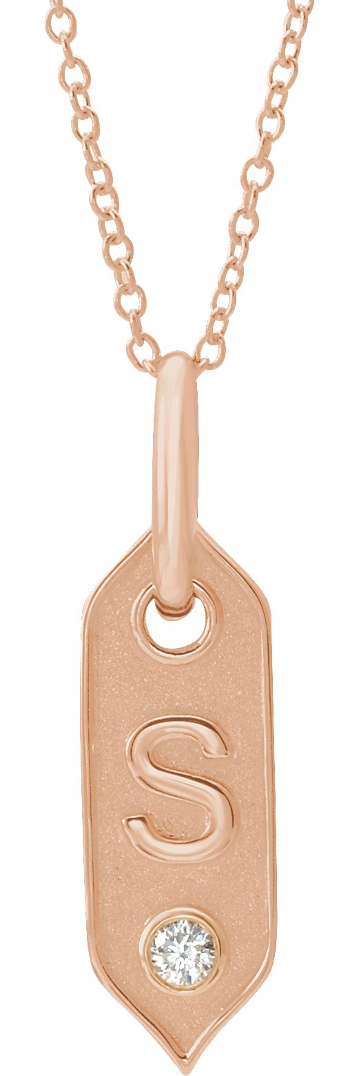 14K Rose Initial S .05 CT Diamond 16-18" Necklace