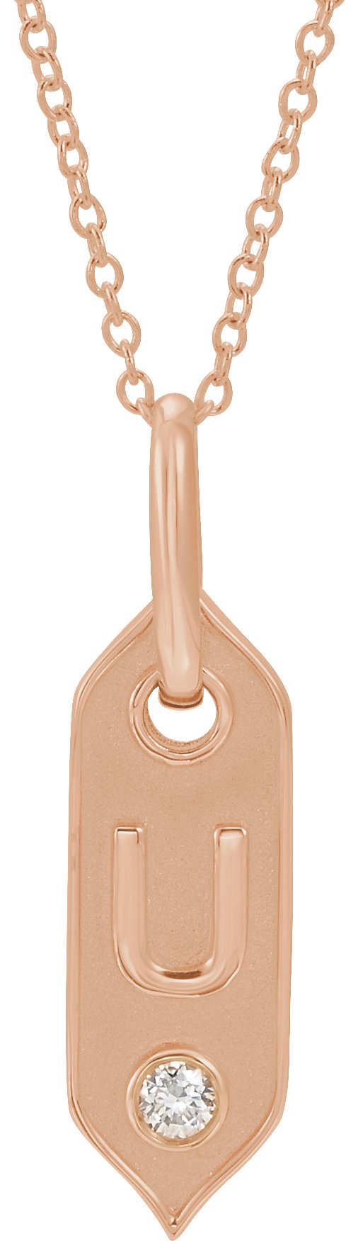 14K Rose Initial U .05 CT Diamond 16-18" Necklace