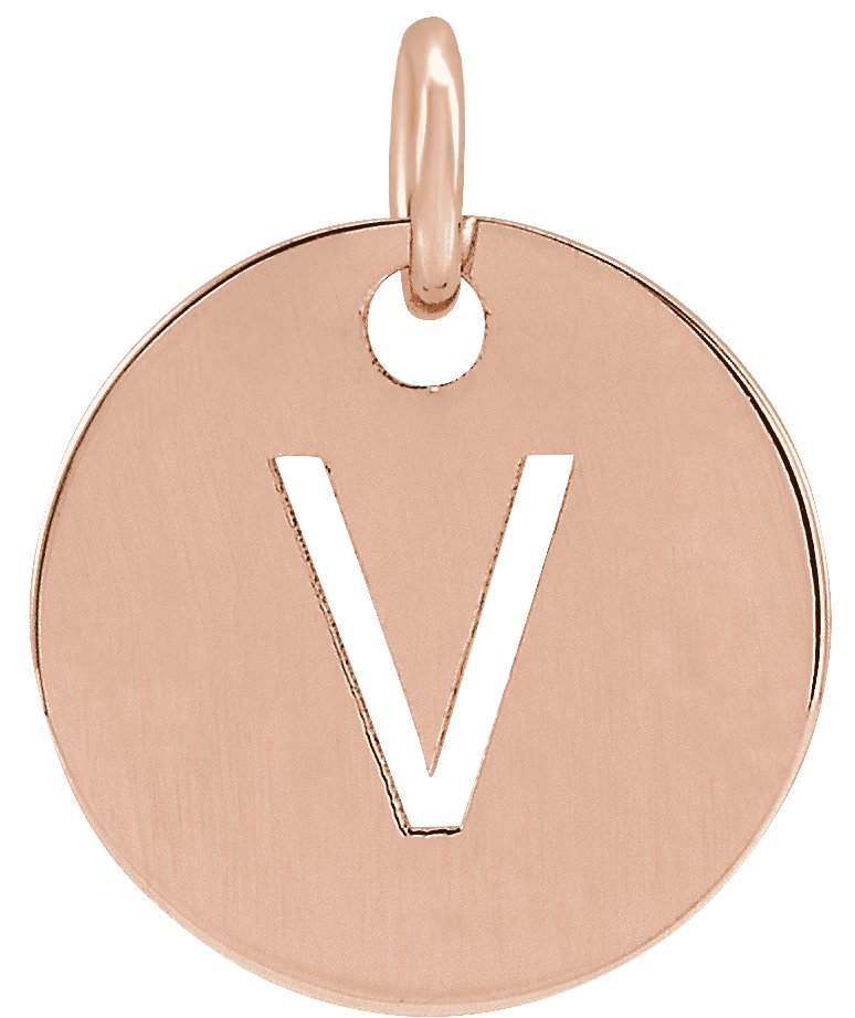 14K Rose Initial V 10 mm Disc Pendant Ref 16868447