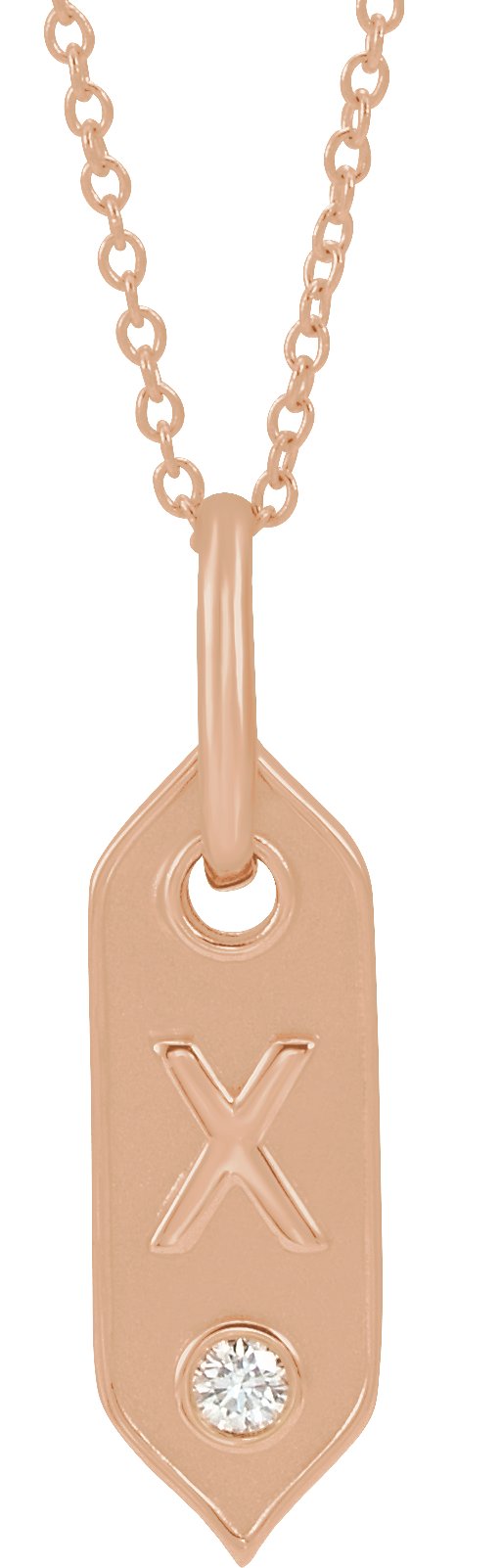 14K Rose Initial X .05 CT Diamond 16-18" Necklace