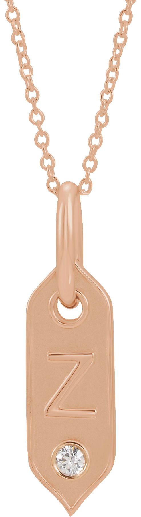 14K Rose Initial Z .05 CT Diamond 16-18" Necklace