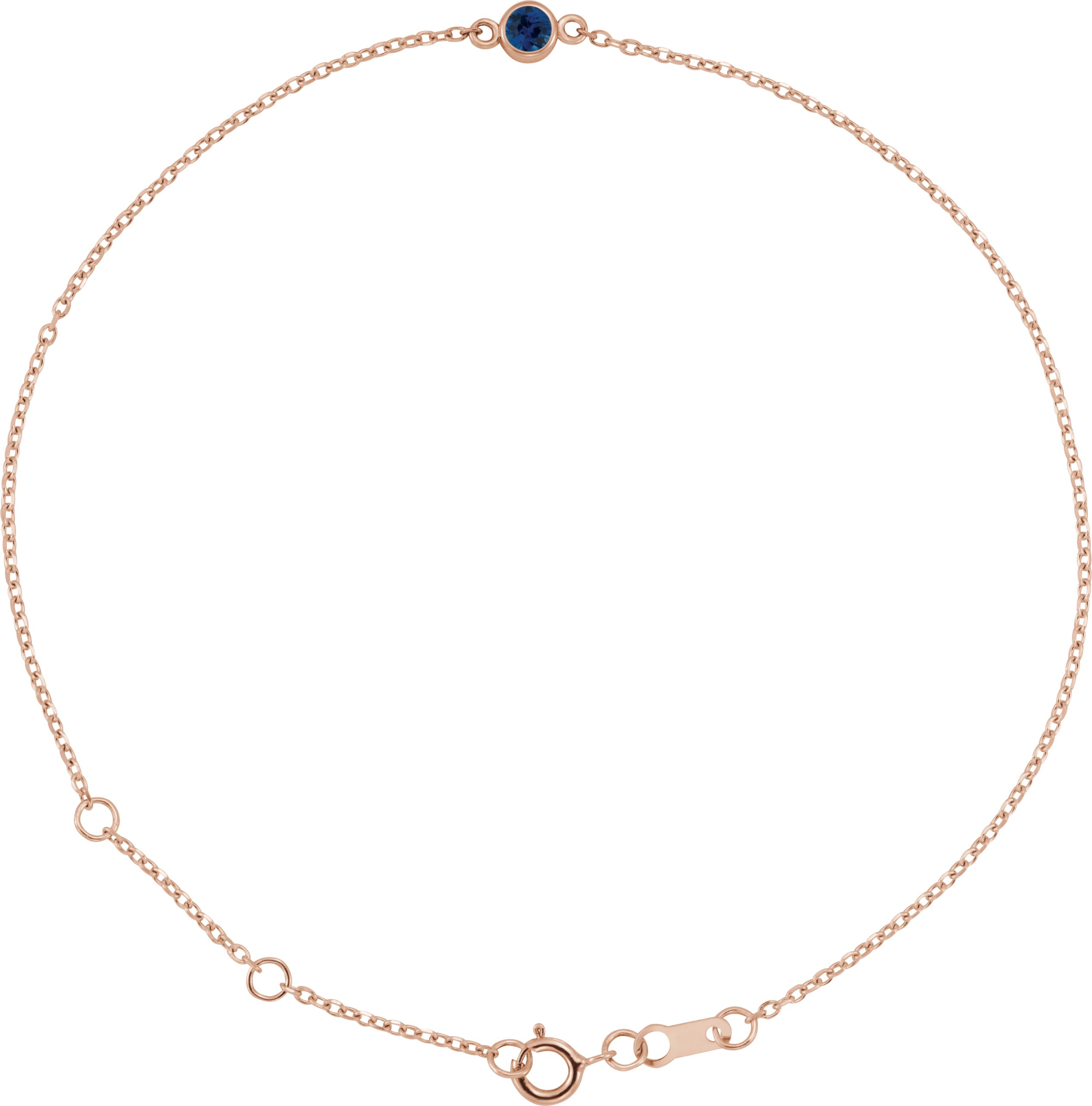 14K Rose Lab Grown Blue Sapphire Bezel Set Solitaire 6.50 to 7.50 inch Bracelet Ref 18679820