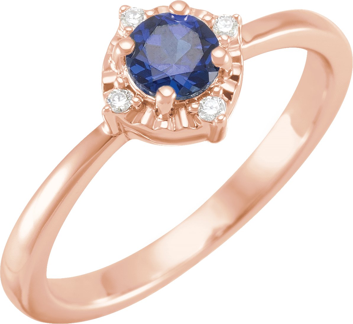 14K Rose Lab Grown Blue Sapphire and .04 CTW Natural Diamond Halo Style Ring Ref 17920187