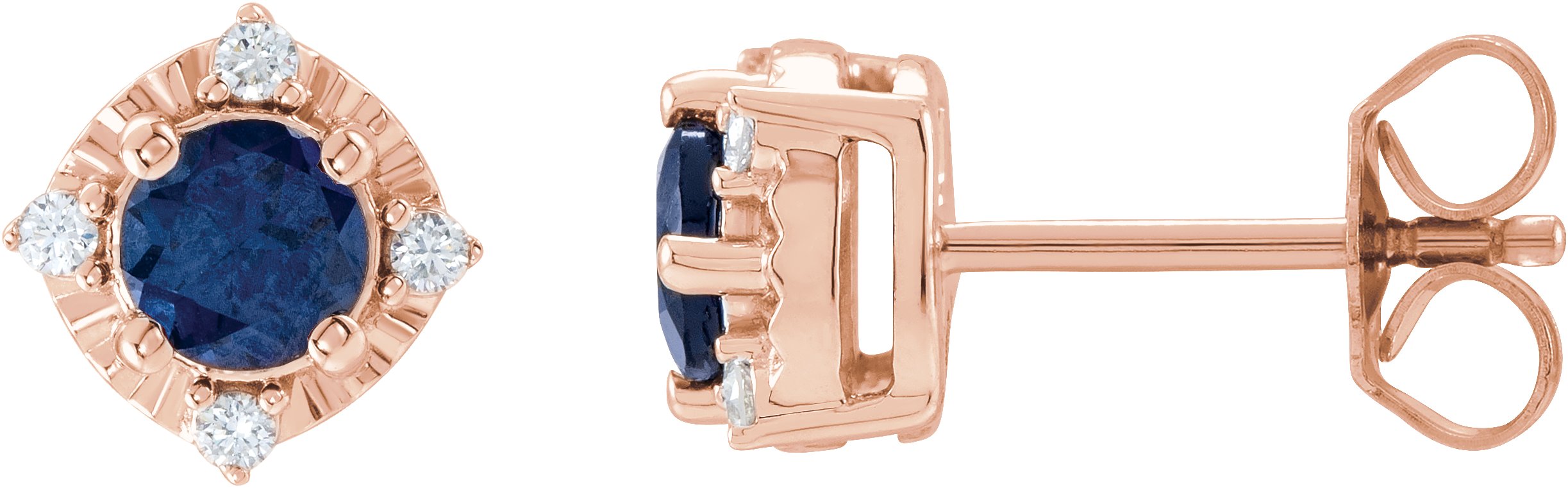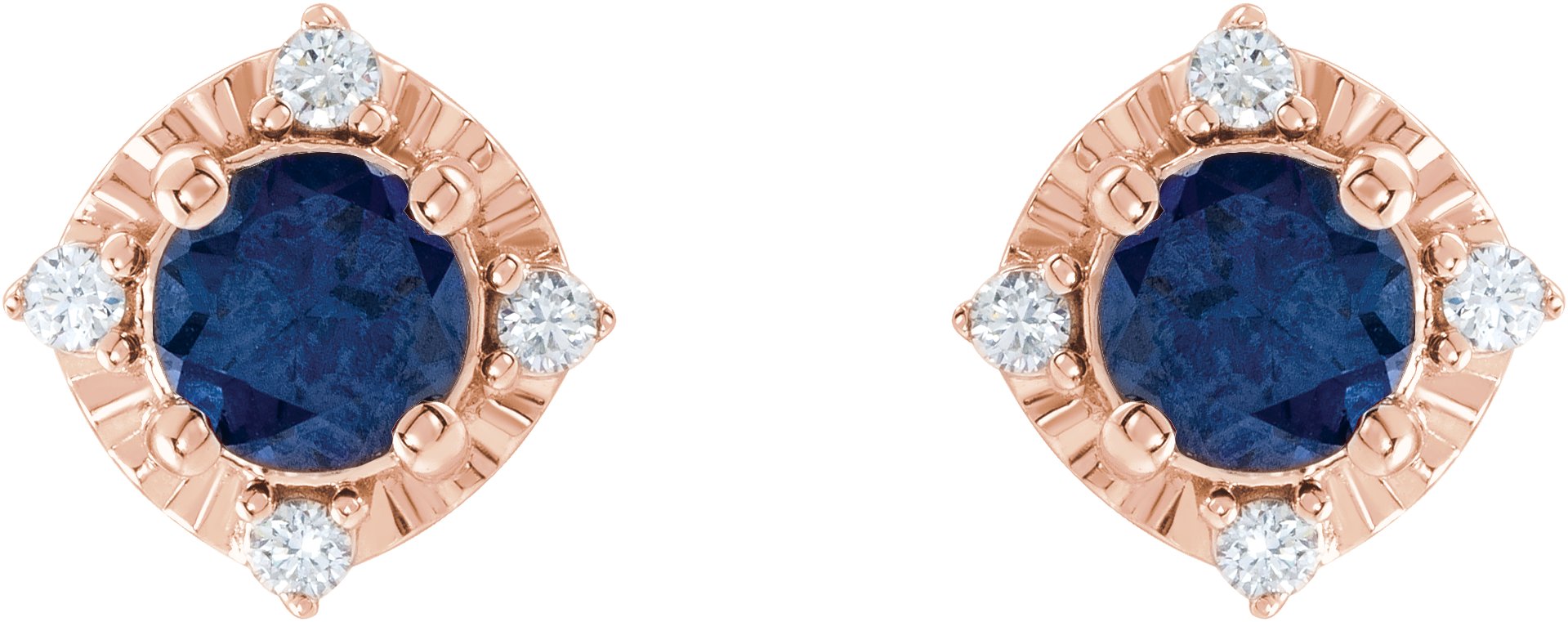 14K Rose Lab Grown Blue Sapphire and .08 CTW Natural Diamond Halo Style Earrings Ref 17914958