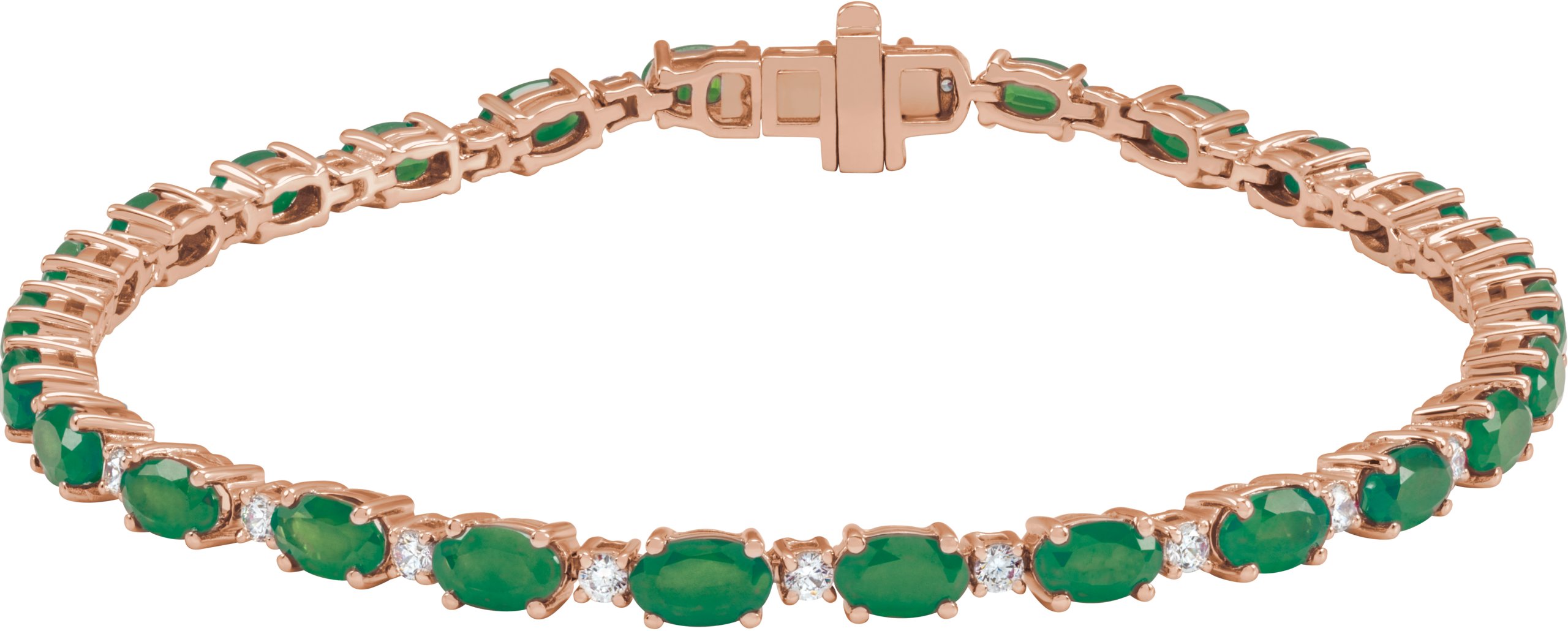 14K Rose Lab-Grown Emerald & 5/8 CTW Lab-Grown Diamond Line 7" Bracelet
