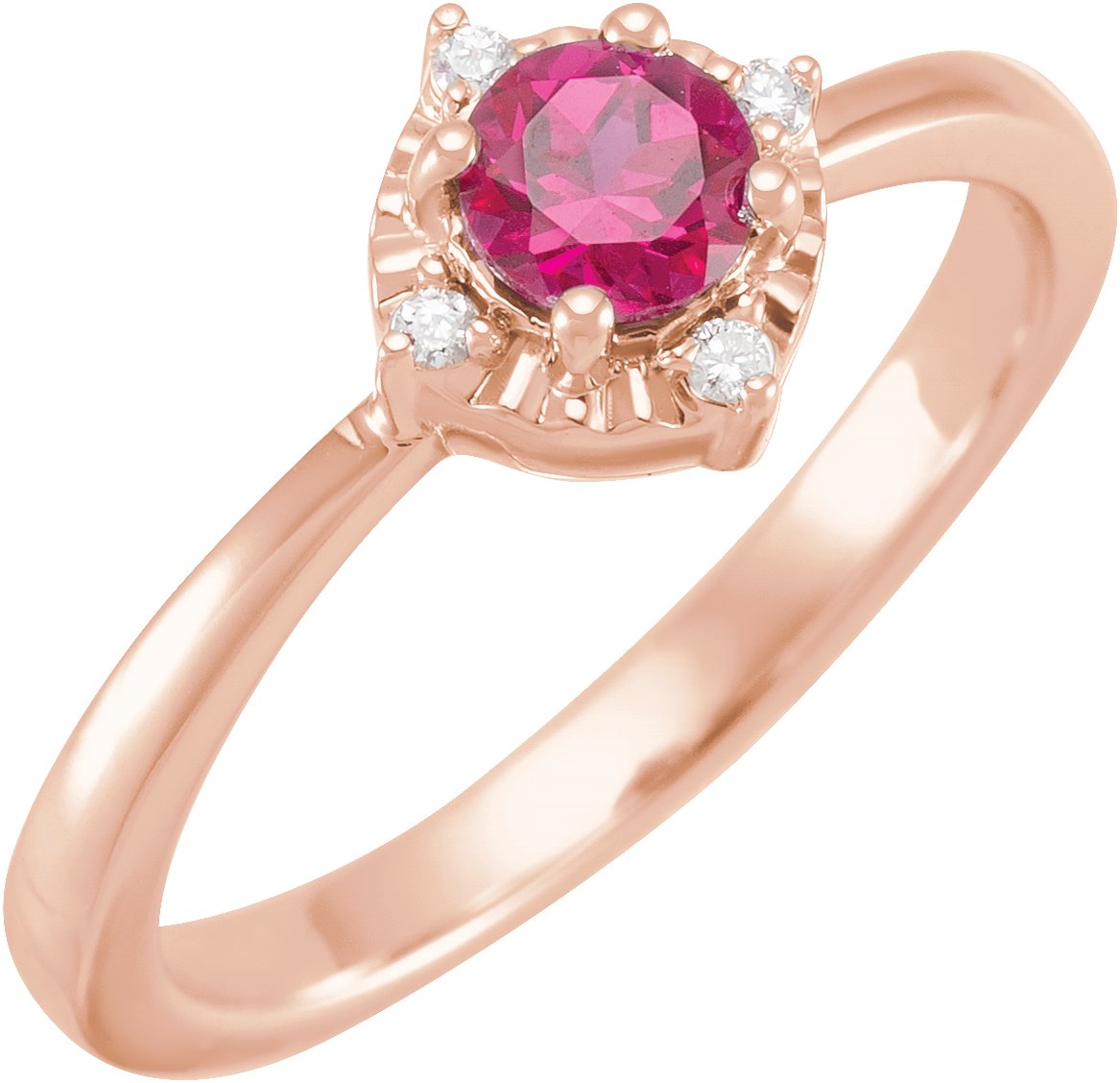 14K Rose Lab Grown Ruby and .04 CTW Natural Diamond Halo Style Ring Ref 17920179