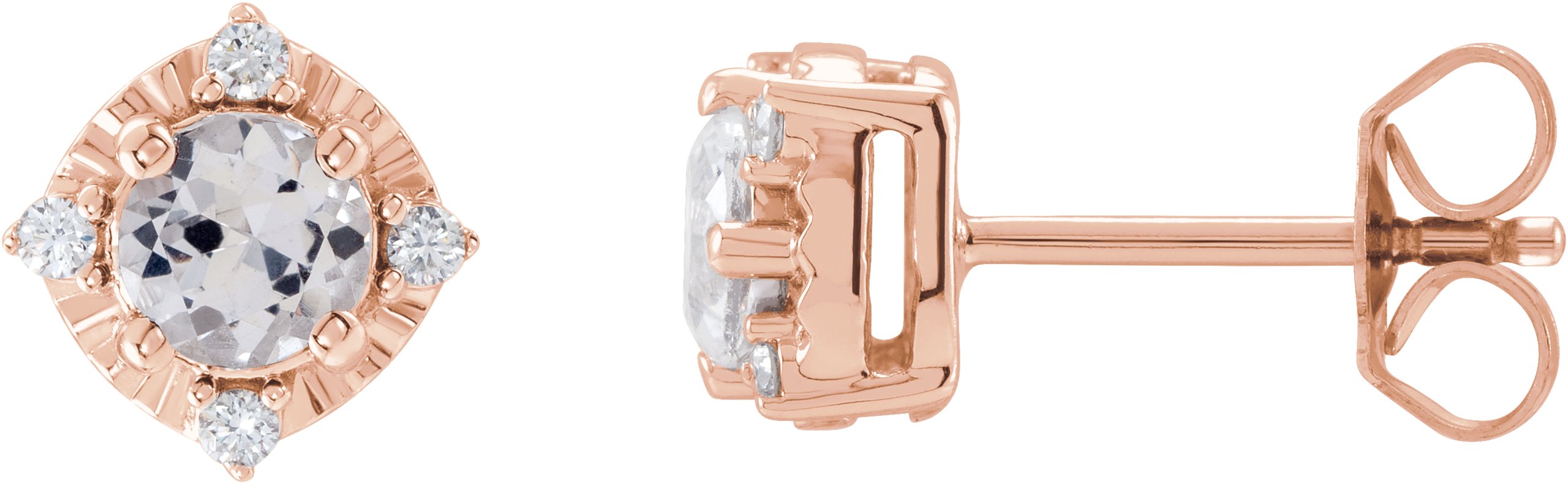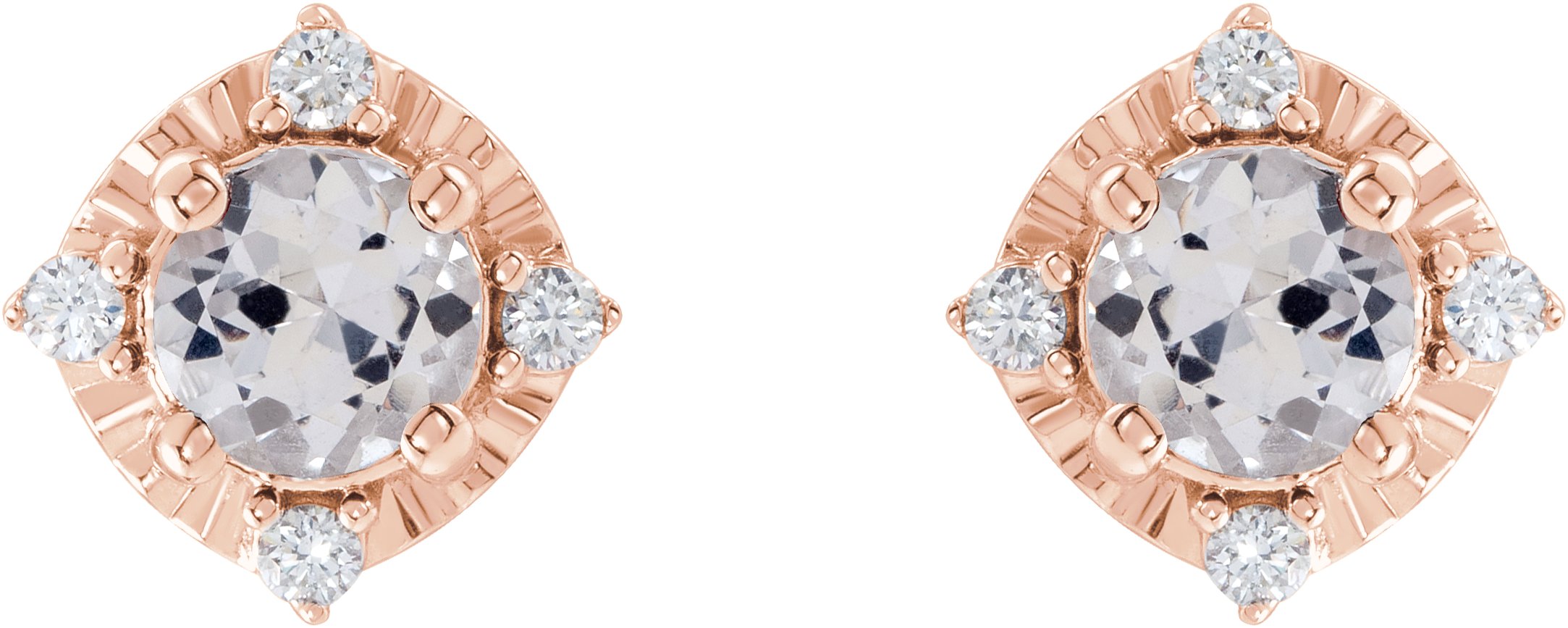 14K Rose Lab Grown White Sapphire and .08 CTW Natural Diamond Halo Style Earrings Ref 17914938